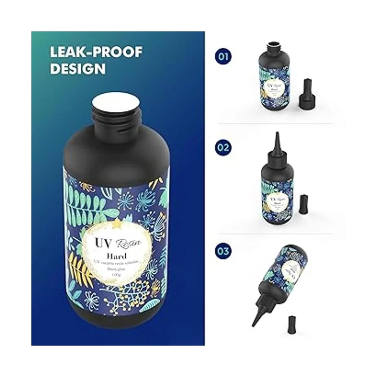 Resina UV no tóxica: nuestra resina UV está hecha con material respetuoso con el medio ambiente, no tóxico y seguro, con excelentes certificaciones de calidad y seguridad del producto. Solo hay poco olor antes del secado, pero inofensivo y desaparecerá completamente después del secado.