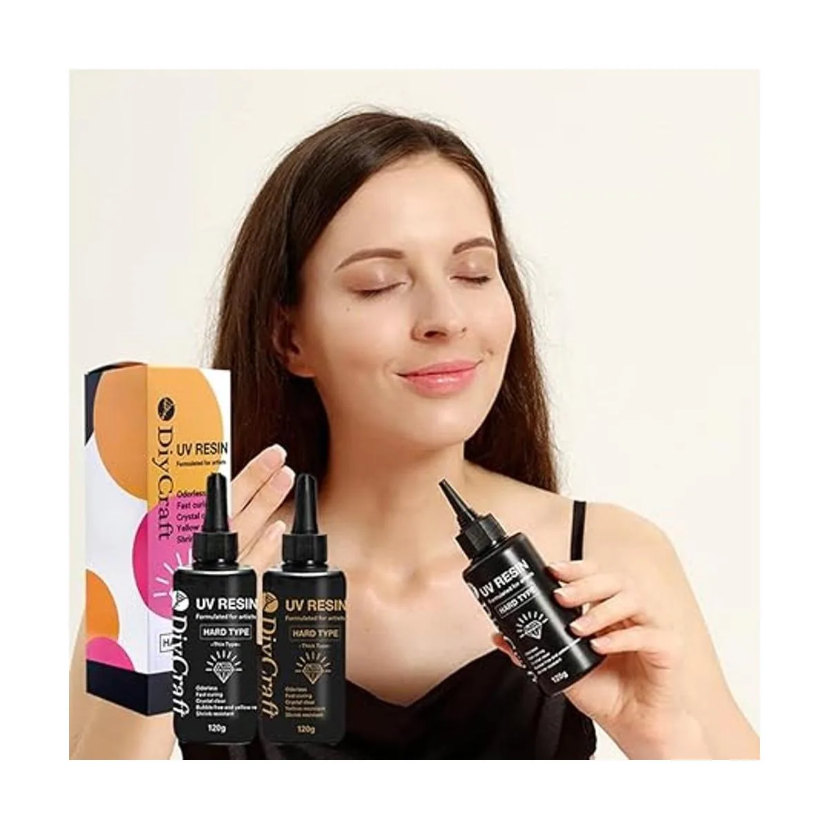 Resina UV DIY Resina dura transparente sin olor tipo fino de 4.23 oz, tipo grueso de 4.23 oz, adecuado para productos de doming, alto radián, kit de fabricación de resina epoxi de curado rápido