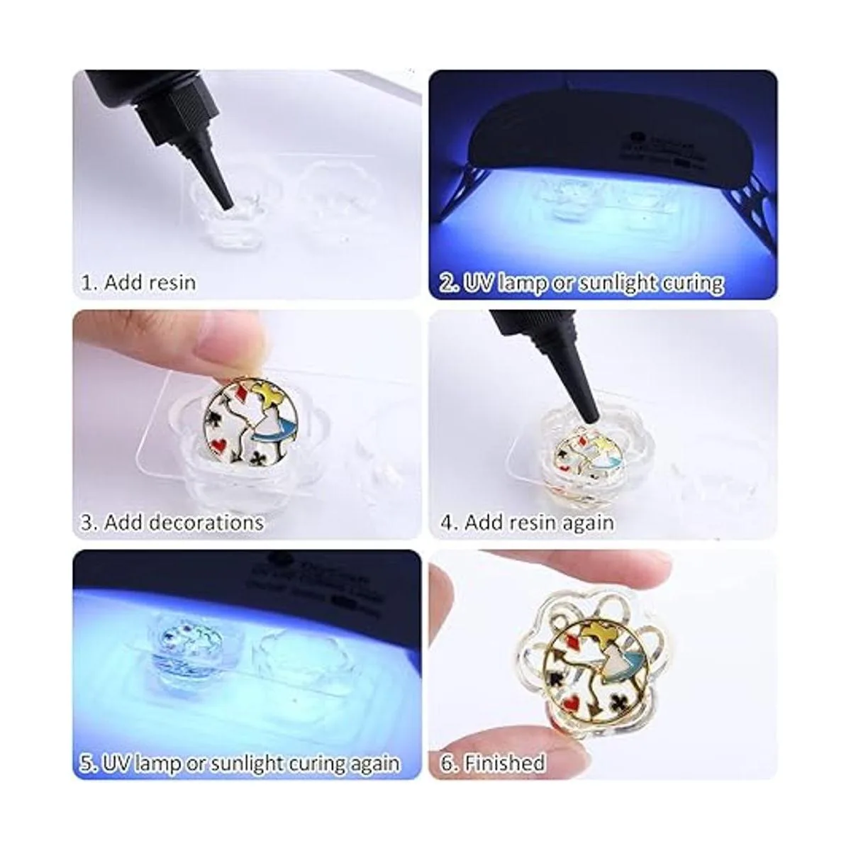 Multiusos: la resina UV transparente se puede utilizar para hacer joyas, manualidades, fundición y revestimiento, figuras fundidas y hacer pinturas de resina, etc. También se puede mezclar con polvo de mica, colorantes, purpurina para obtener acabados coloridos. No hagas grandes proyectos.