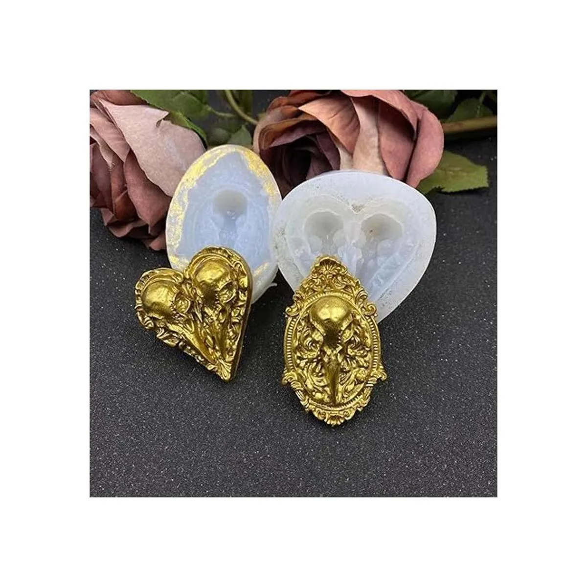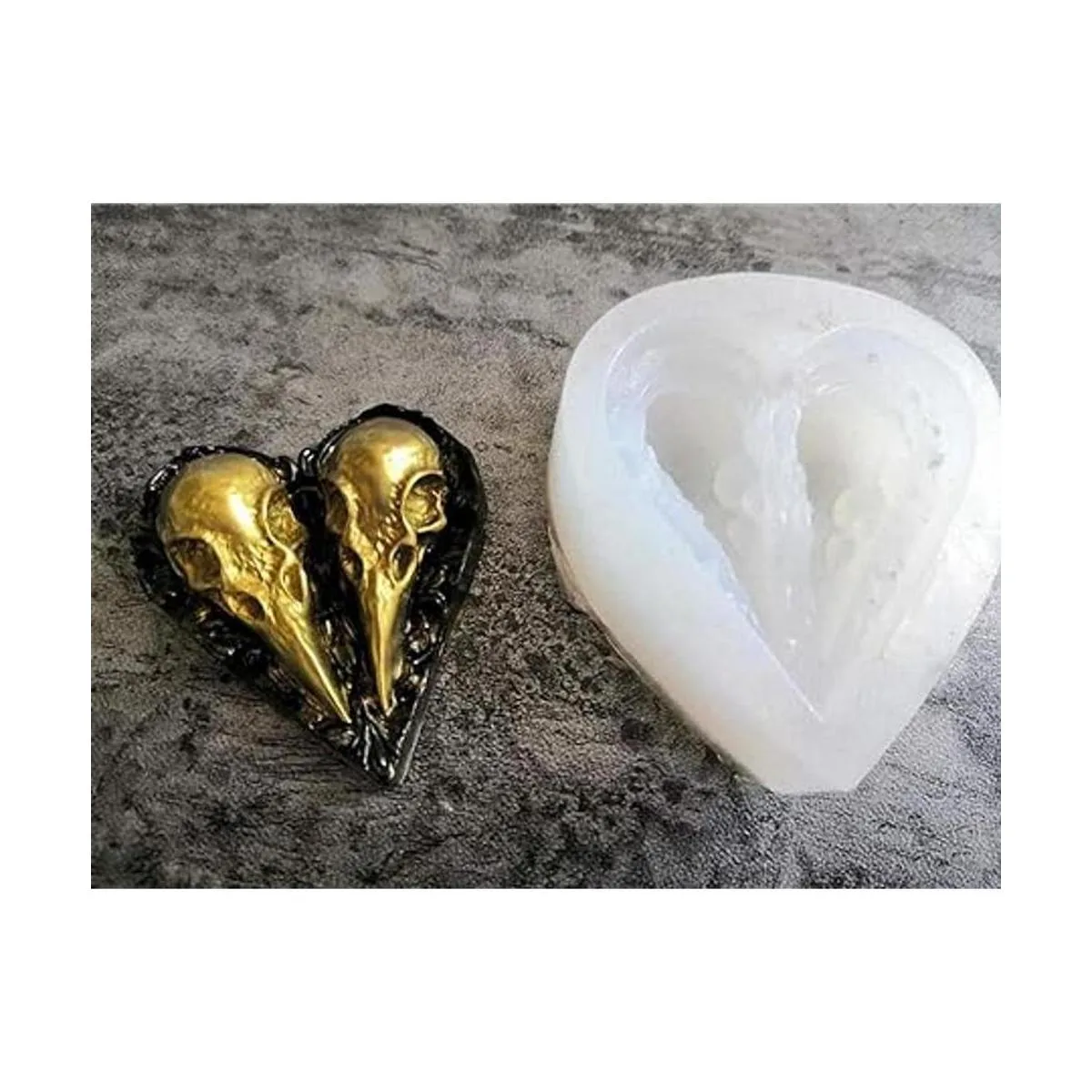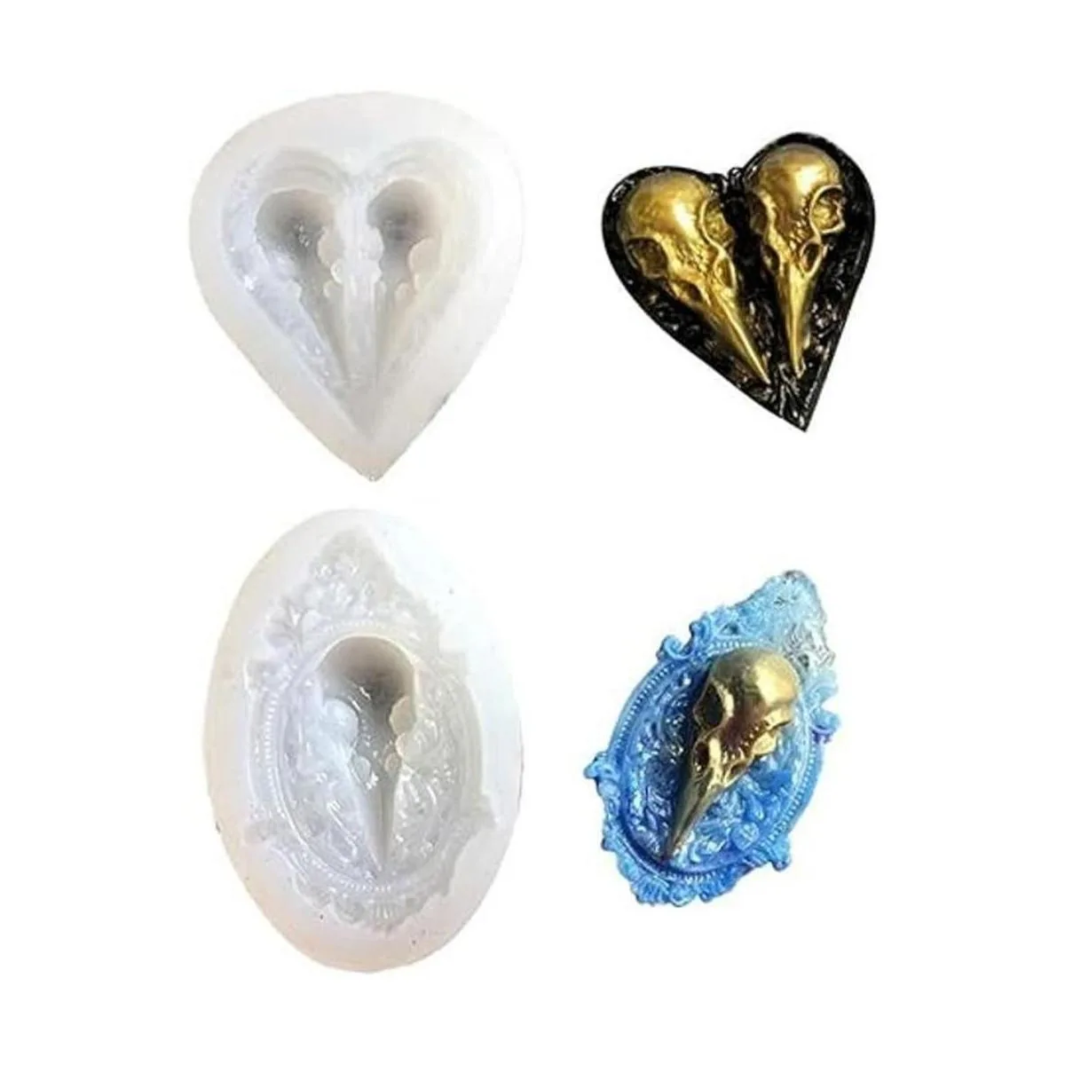 ResinPro Juego de 2 moldes de resina de silicona con diseño de calavera de cuervo, para hacer joyas de Halloween, manualidades