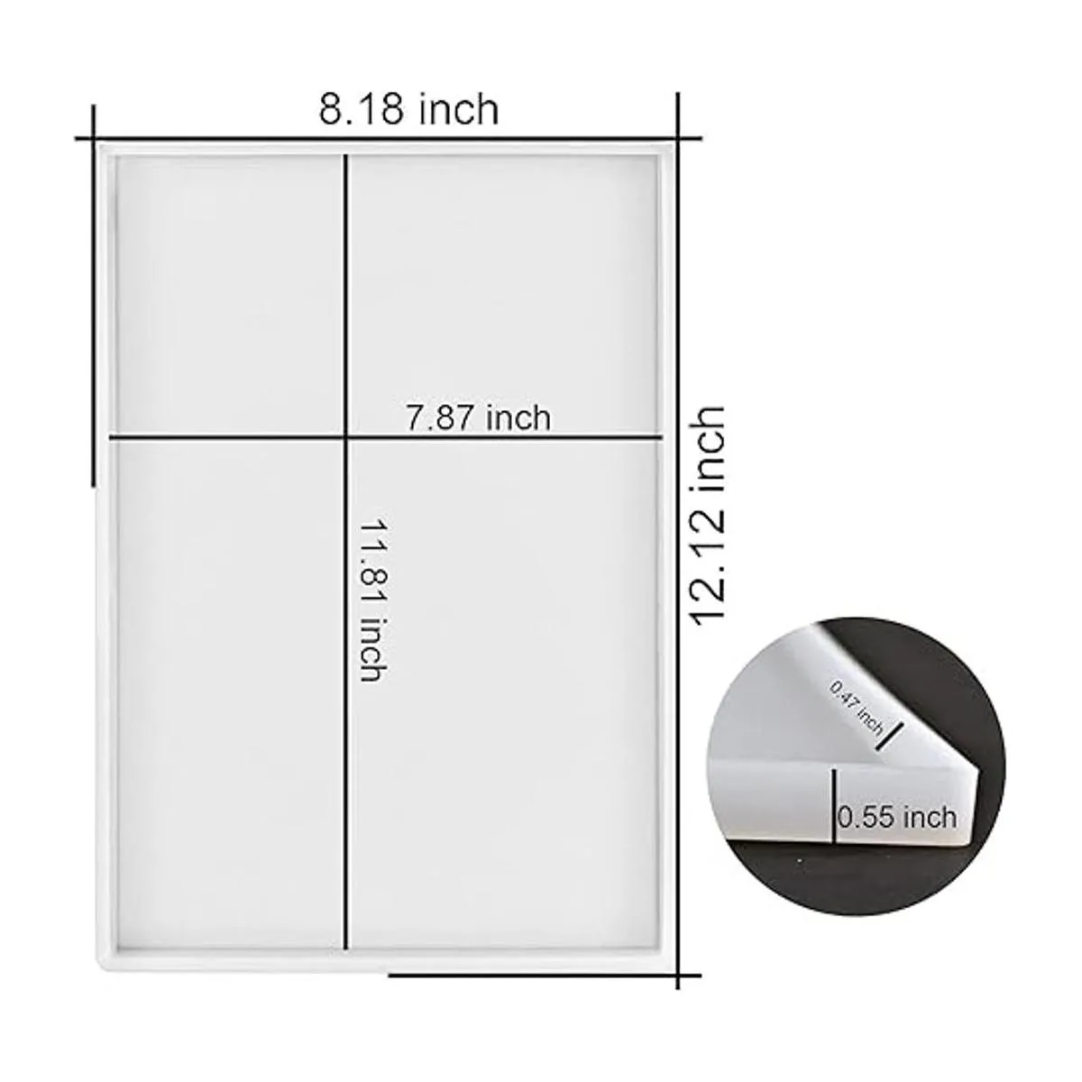 Moldes de bandeja plana grandes: tamaño del molde 12.12 x 8.18 x 0.55 pulgadas, el tamaño del producto acabado 11.81 x 7.87 x 0.47 pulgadas