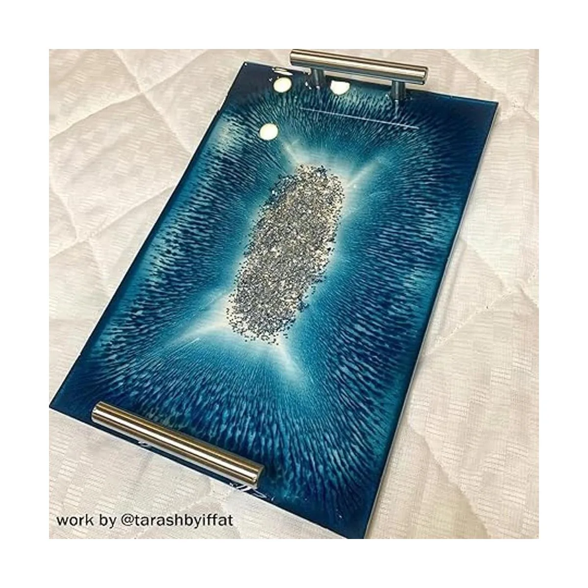 Amplia gama de aplicaciones: los moldes de bandeja de resina se pueden utilizar para hacer bandejas de frutas, bandejas de ágata geoda, arte de resina colgante de pared, bandeja de servir, bandeja de maquillaje, manualidades de resina, decoración del hogar, etc.