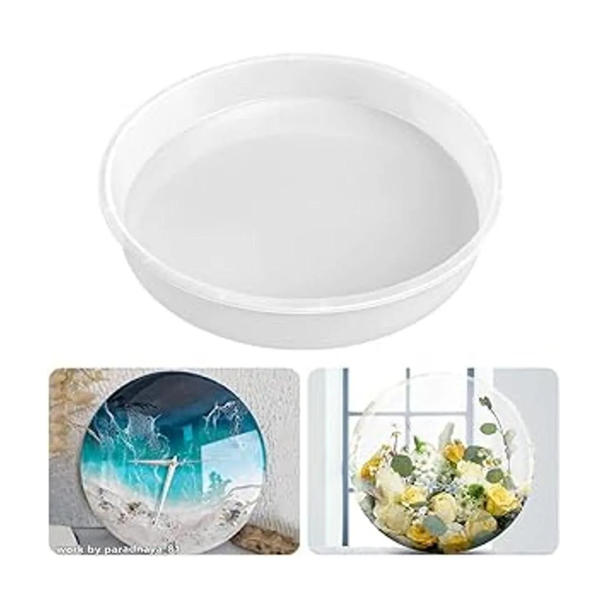 RESINWORLD Molde de bandeja grande XL redonda de 14 pulgadas x 2 pulgadas de profundidad, bandeja de silicona brillante para fundición de resina epoxi, ramo de resina de preservación floral, decoración del hogar
