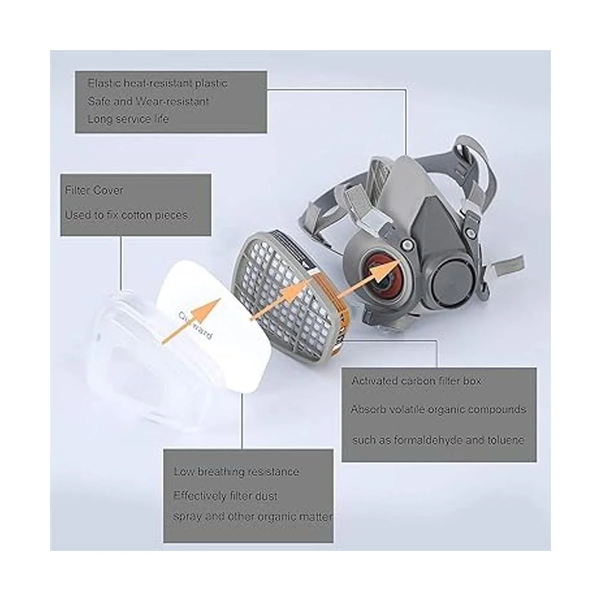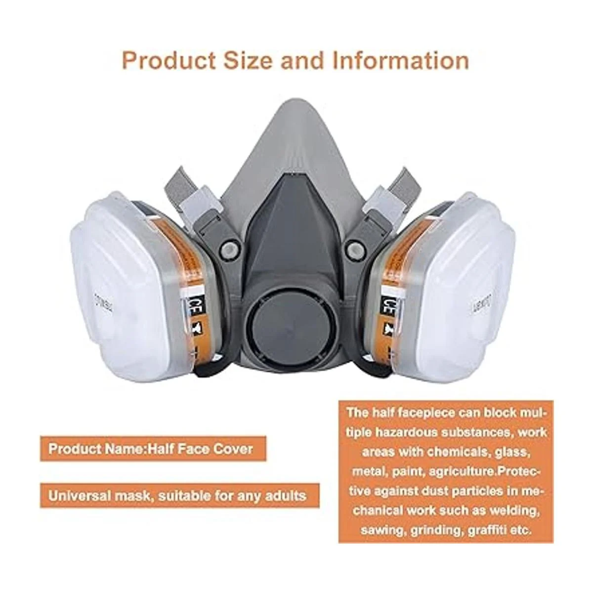 Material cómodo: el respirador de media cara está hecho de material de silicona de alta calidad, no tóxico, suave, cómodo y duradero.