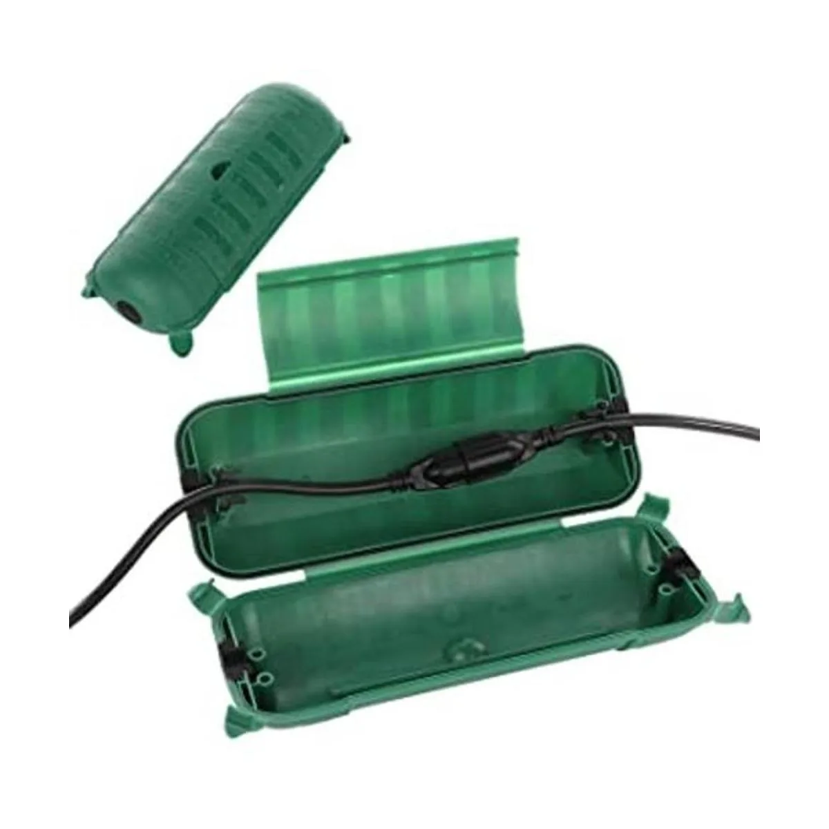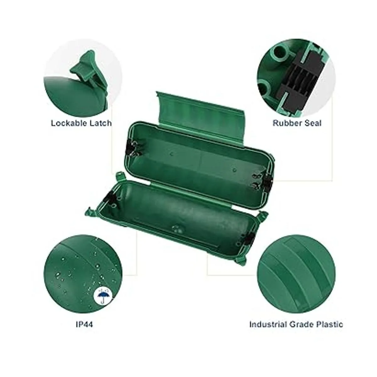 Fácil de usar: no requiere instalación, fácil de abrir con tapa superior y 4 pestañas de bloqueo, coloca la conexión y el cable correctamente, bloquea y sella. El color verde también combina con tu jardín y paisaje de patio sin interrupciones.