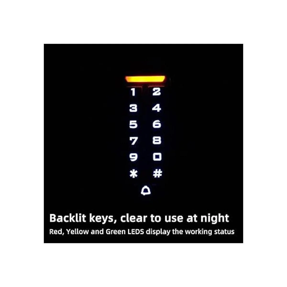 Teclas con función de retroiluminación: la luz de las teclas permanecerá encendida en lugares oscuros o por la noche. Incluye luz indicadora. La luz roja se enciende cuando entras en modo programación, la luz amarilla se enciende cuando estás en el modo programación y la luz se enciende cuando la programación ha sido exitosa.