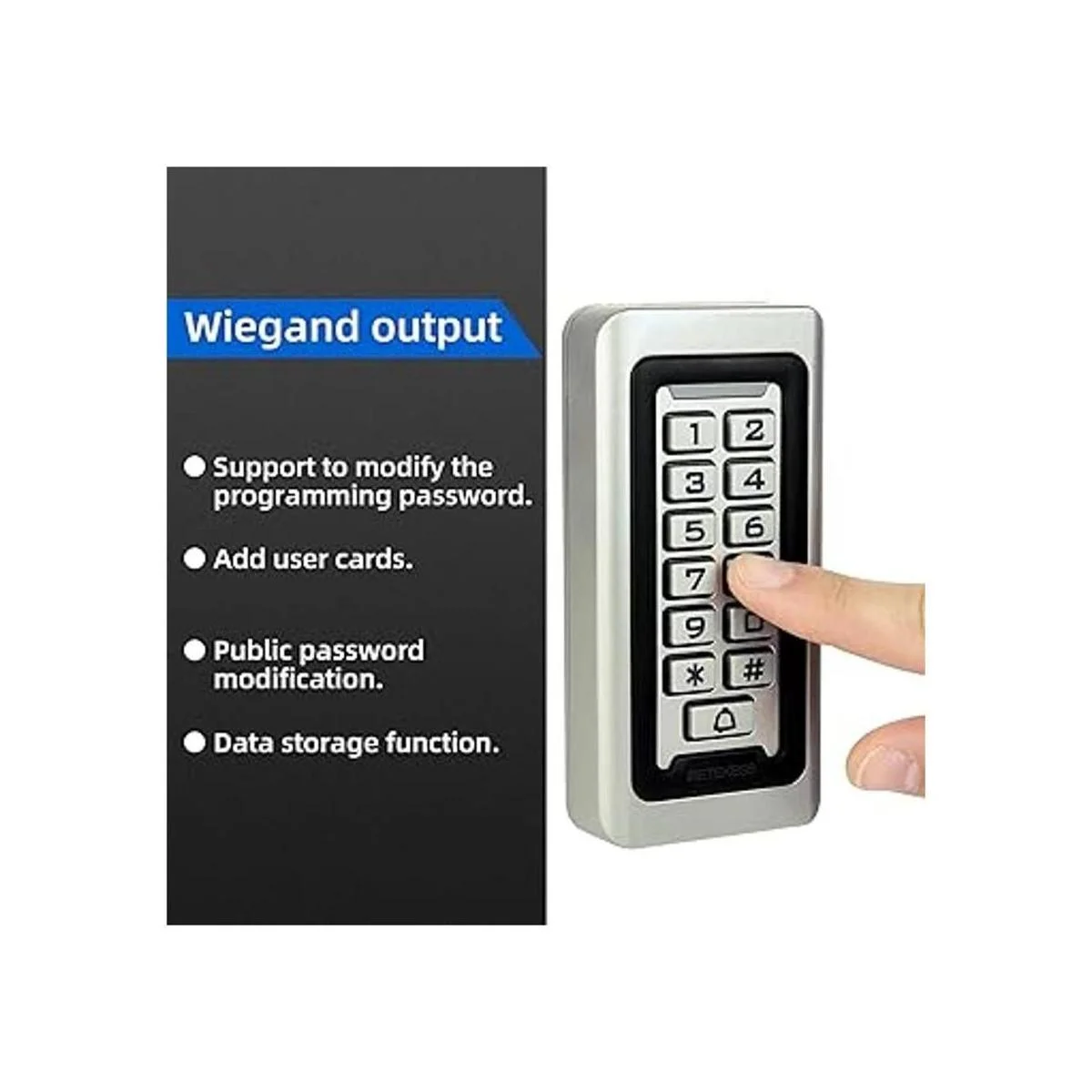 Fácil de utilizar: se puede programar por completo desde el teclado. Admite 3 modos de acceso: con tarjeta, PIN o tarjeta con PIN. Puedes configurar una contraseña pública o privada y también cambiarla, lo que hace que sea más seguro y personalizado.