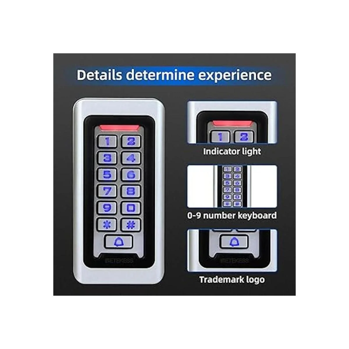Retekess TAC03 Teclado de seguridad para control de acceso; teclado RFID para control de acceso en puertas; teclado independiente para hasta 2000 usuarios con interfaz Wiegand de 26 bits, compatible con tarjetas de proximidad RFID