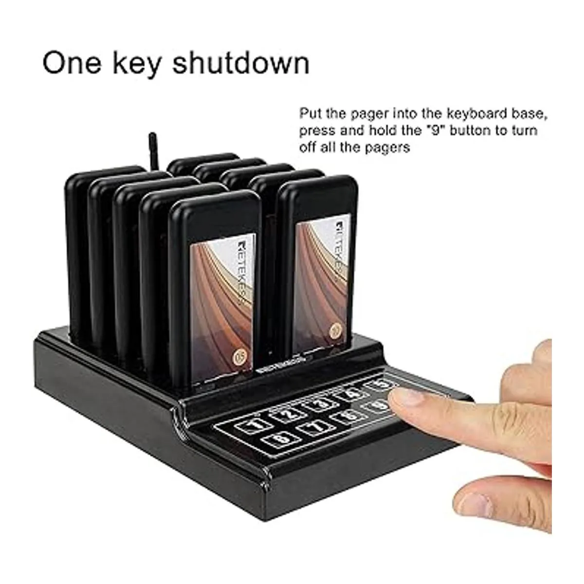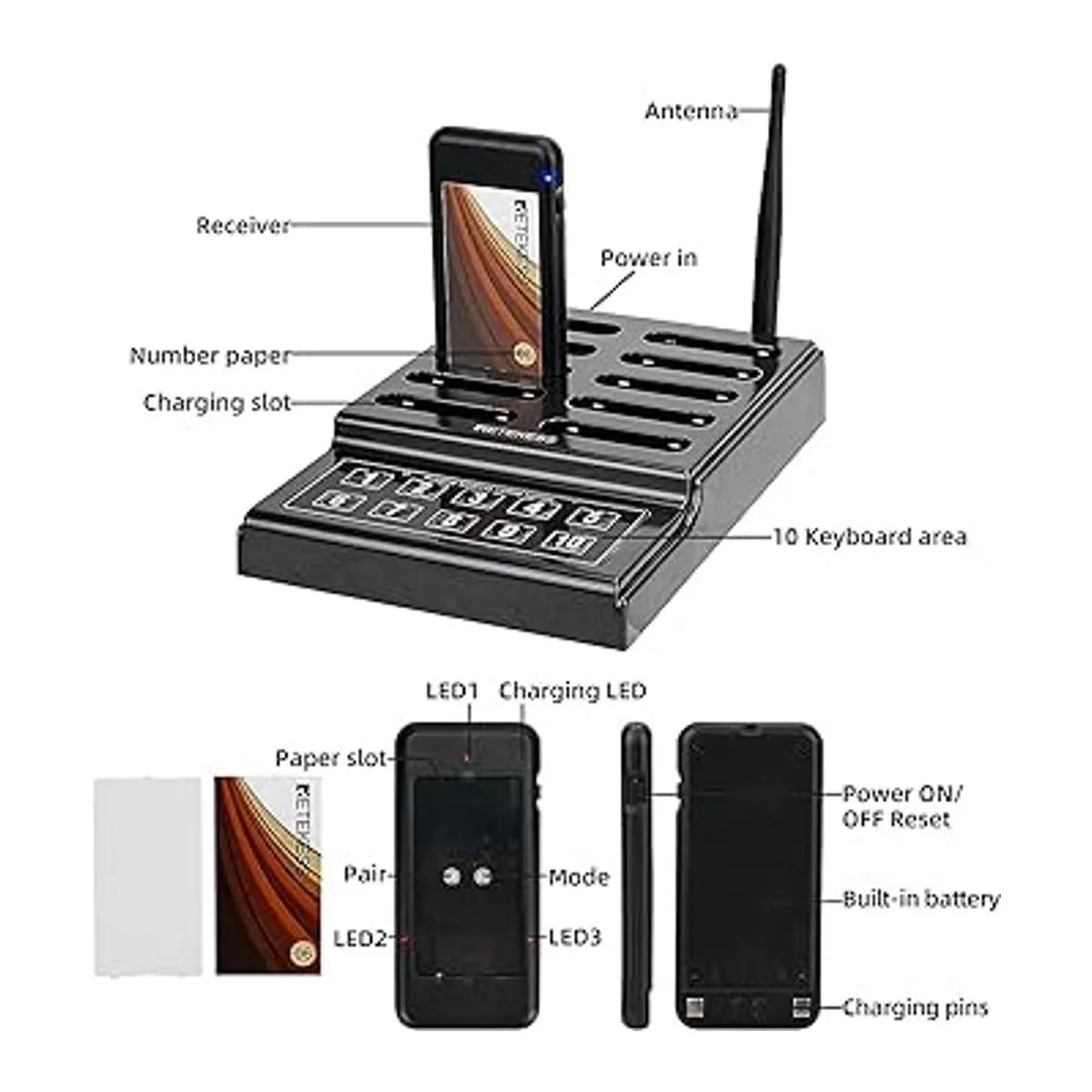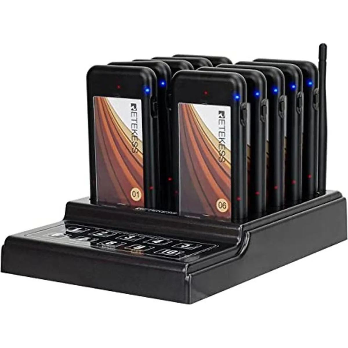 Retekess TD174 Sistema de llamadas inalámbrico, indicador de batería baja, sistema de paginación de restaurantes, 10 buscadores de zumbadores para camiones de alimentos, clínica, iglesia, hospital