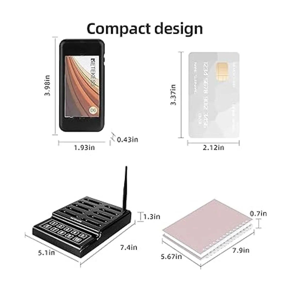 Retekess El sistema de cola de llamada inalámbrica es de tamaño compacto; conveniente para usar; ahorra espacio de manera efectiva; este sistema de localizador pone a los visitantes en fácil y no tiene que buscar por toda la congregación para los padres cuando sus hijos necesitan ayuda