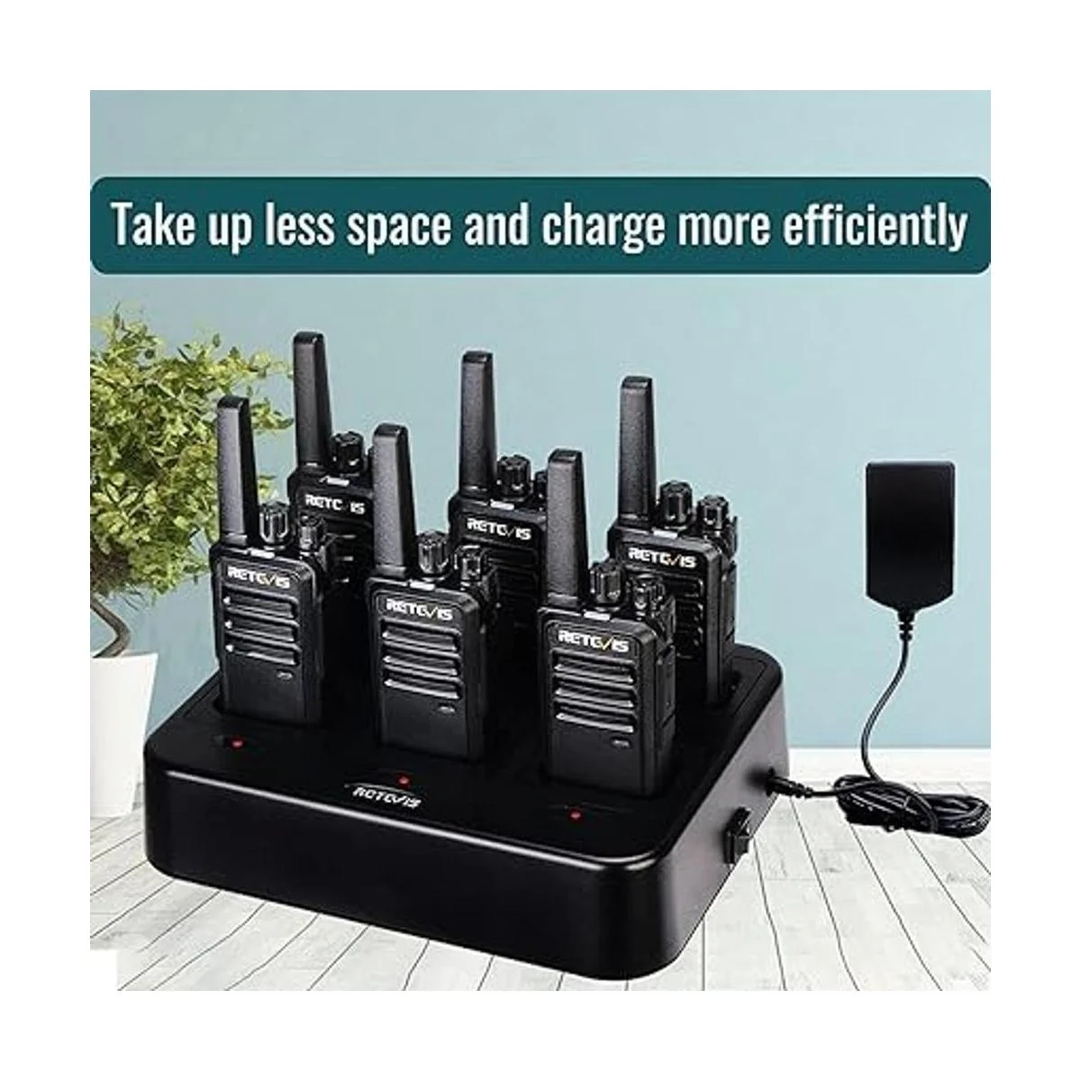Carga eficiente y rápida; walkie talkie con estación de carga múltiple de 6 vías; carga hasta 6 radios bidireccionales o baterías al mismo tiempo; te ayuda a ahorrar más espacio y tiempo