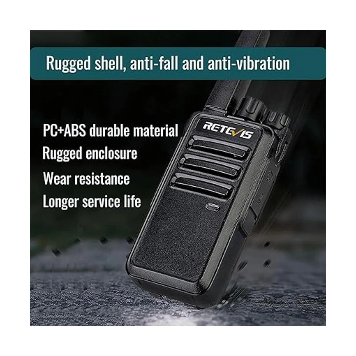 Radios resistentes de 2 vías; el cuerpo está hecho de materiales duraderos y resistentes; puede soportar golpes y vibraciones en entornos agresivos; se puede utilizar durante mucho tiempo para ahorrar costos de comunicación corporativa