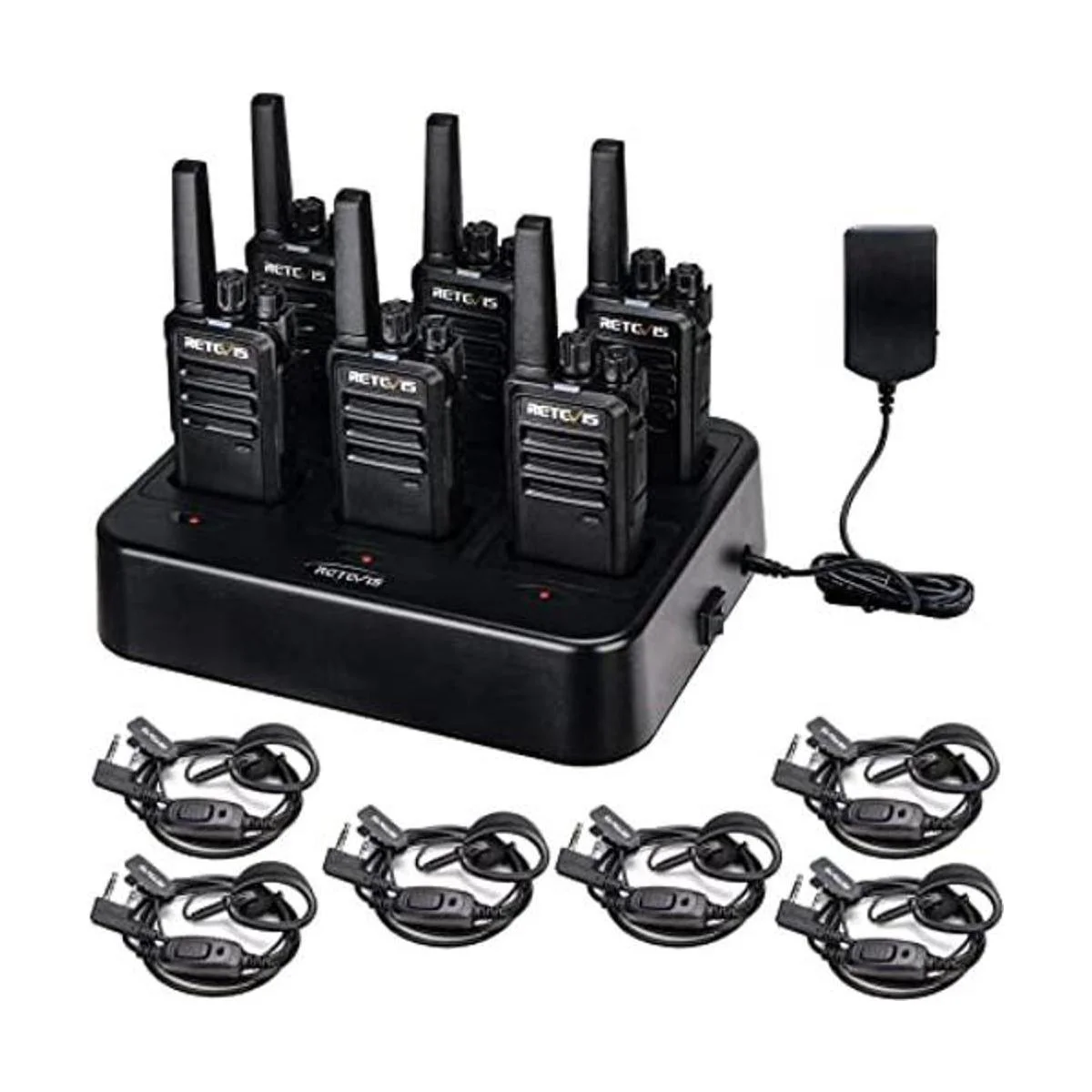 Retevis RT68 Walkie Talkies con auriculares, radios portátiles FRS bidireccionales, recargables, con cargador de unidad múltiple de 6 vías, manos libres, largo alcance, radios resistentes de 2 vías, paquete de 6 para adultos y fabricación escolar