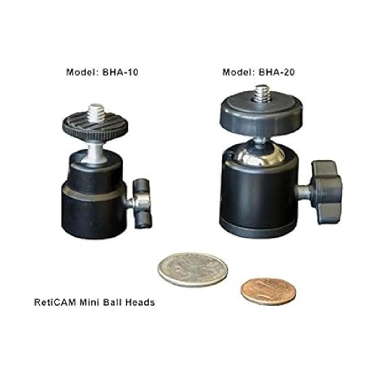 RetiCAM Mini Ball Head BHA10 Metal Ballhead 360 Pan 90 Tilt Tripod Mount BHA10, Aluminum