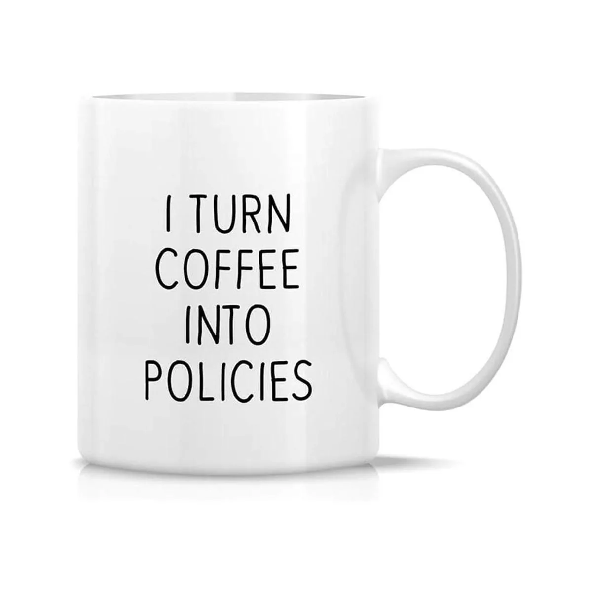 Retreez Taza divertida I Turn Coffee Into Policies Insurance Agent 11 oz tazas de café de cerámica divertido, sarcástico, motivacional, regalos de cumpleaños inspiradores para amigos, compañeros de trabajo, hermanos, papá o mamá