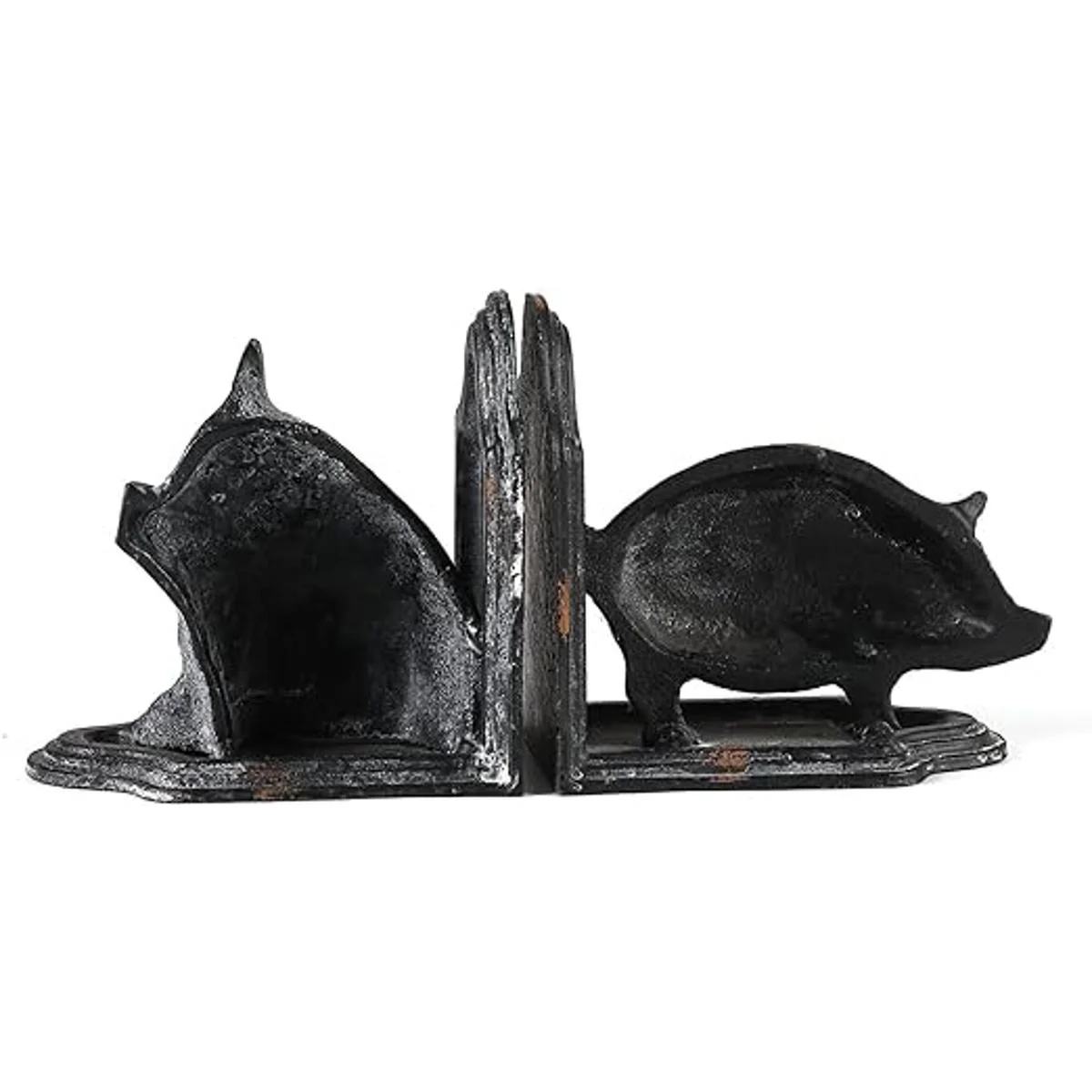 Retrome Par de sujetalibros en forma de cerdo, acabado gris envejecido