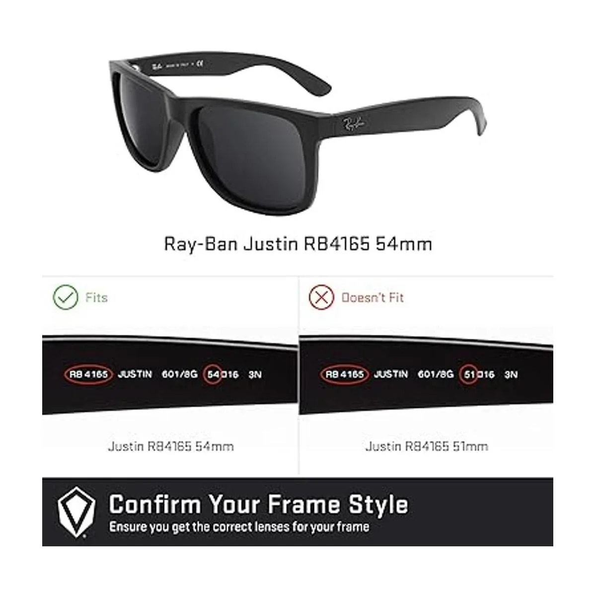 Corte de precisión: las lentes de repuesto compatibles con los lentes de sol Ray Ban Justin RB4165 de 2.126 in están garantizadas para ajustar.