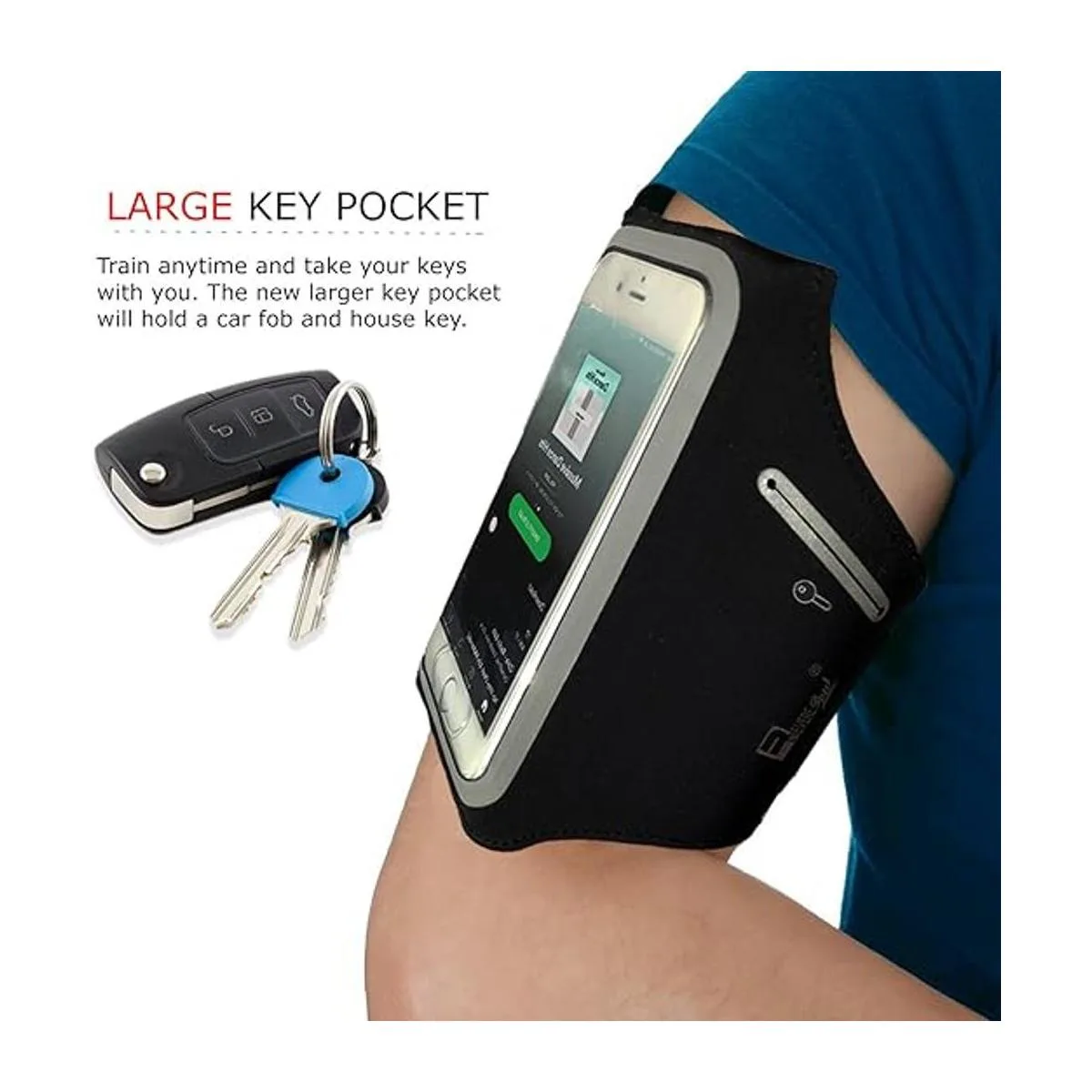 RevereSport Brazalete impermeable para iPhone Pro Max 141312Plus con bolsillos adicionales para llaves, dinero en efectivo y tarjetas de crédito. Soporte para brazo de teléfono para deportes, entrenamientos de gimnasio y ejercicio