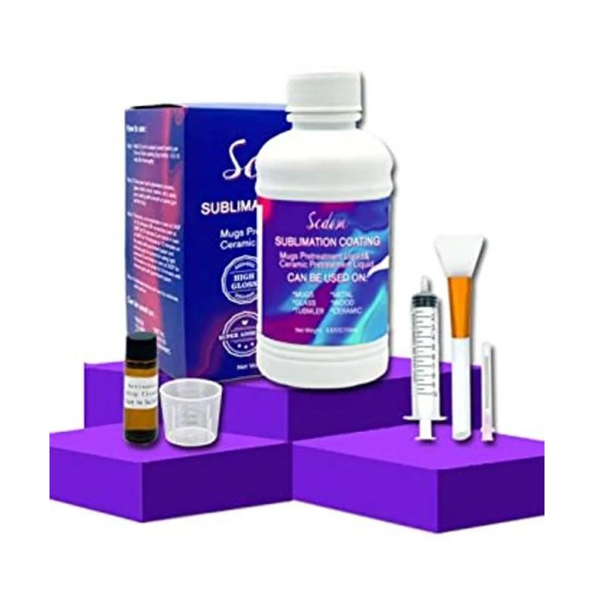 Paquete: 1 botella de 8.5 fl oz de revestimiento universal de sublimación, 1 botella de 0.5 fl oz de activador, 1 jeringa de 0.3 fl oz, 1 taza medidora de 1.0 fl oz, 1 cepillo de silicona.