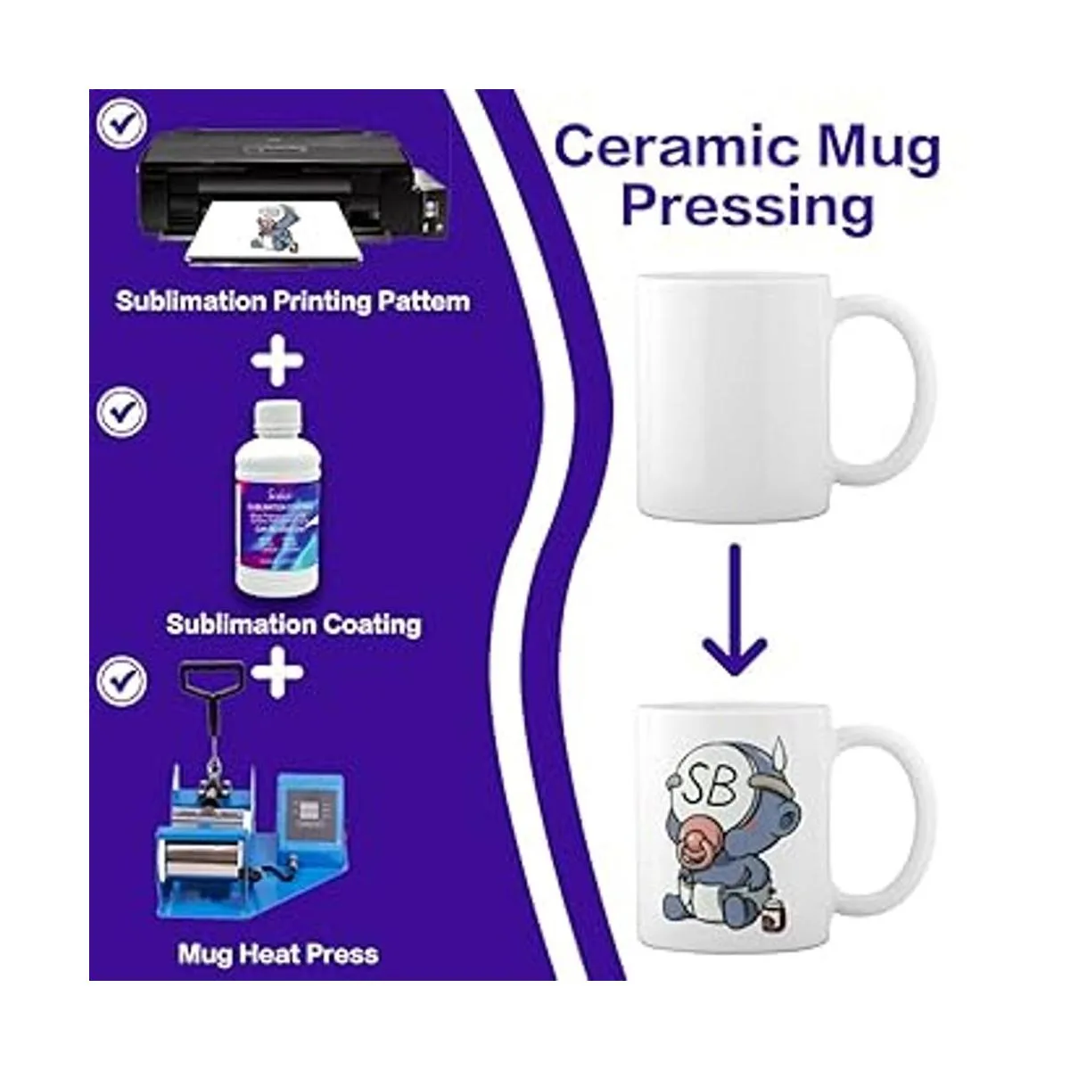 Revestimiento universal de sublimación: hay muchos artículos que se pueden sublimar, funciona en todos los sustratos duros, como tazas, azulejos de cerámica, carcasa de teléfono, madera, piedra, vidrio, acrílico, PVC, cuero, metal, acero inoxidable, aleación de aluminio, platos, tablas de cortar de vidrio, piedras, plástico…