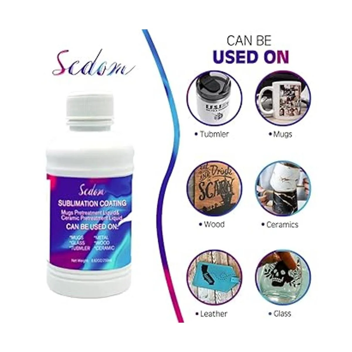 Revestimiento de sublimación universal de 8.5 fl oz, líquido de revestimiento líquido para teléfono, taza, vidrio, cerámica, madera, cristal, metal, acrílico, PVC, piedra, cuero, sublimación de superficies duras