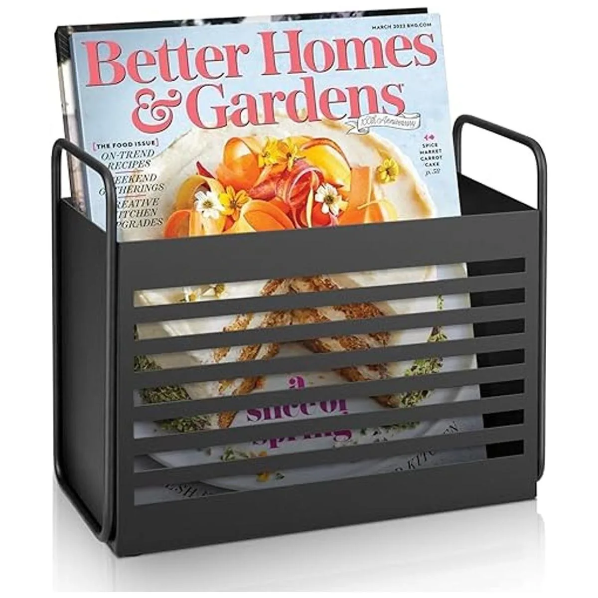 Revistero, soporte de archivo de revistas, organizador de correo, contenedor organizador de carpetas para revistas, libros, periódicos, tabletas en el hogar, oficina, negro