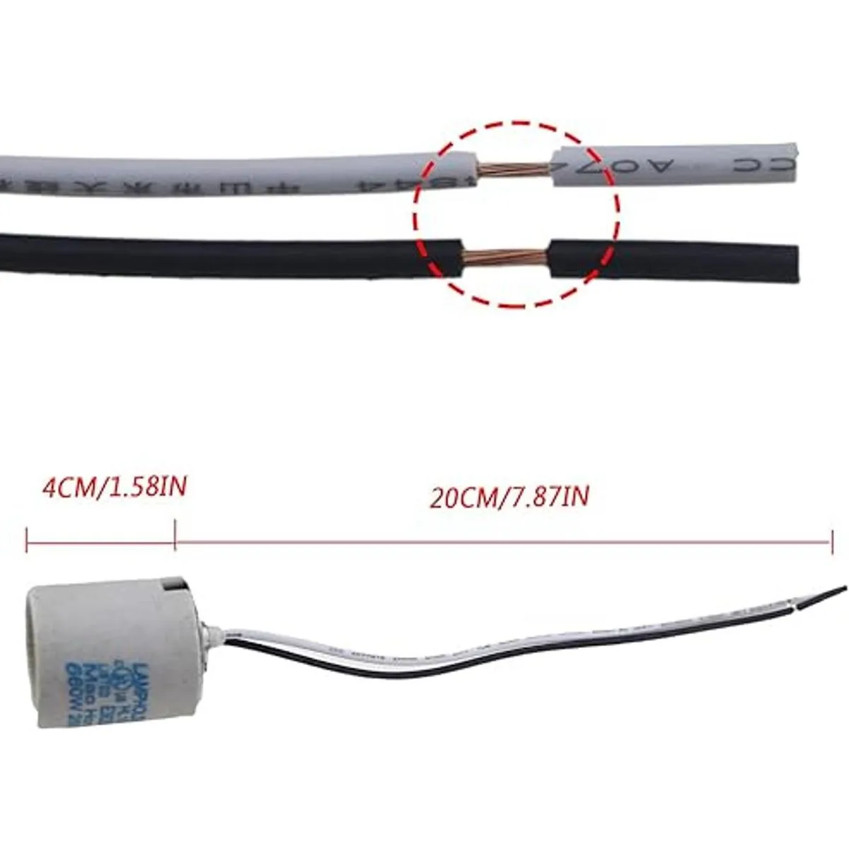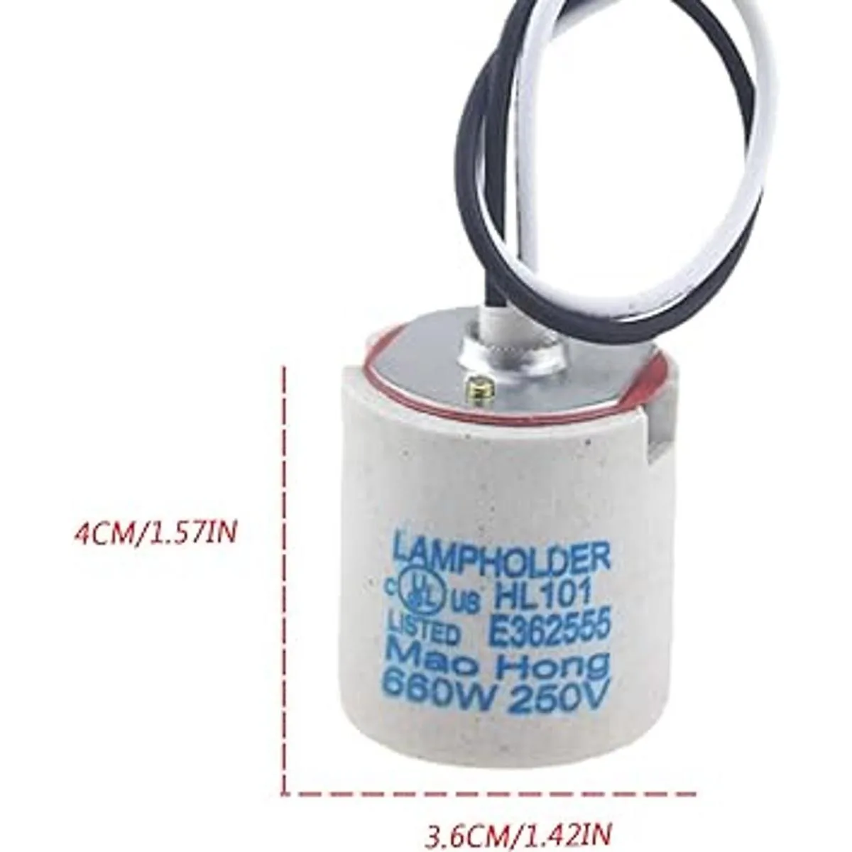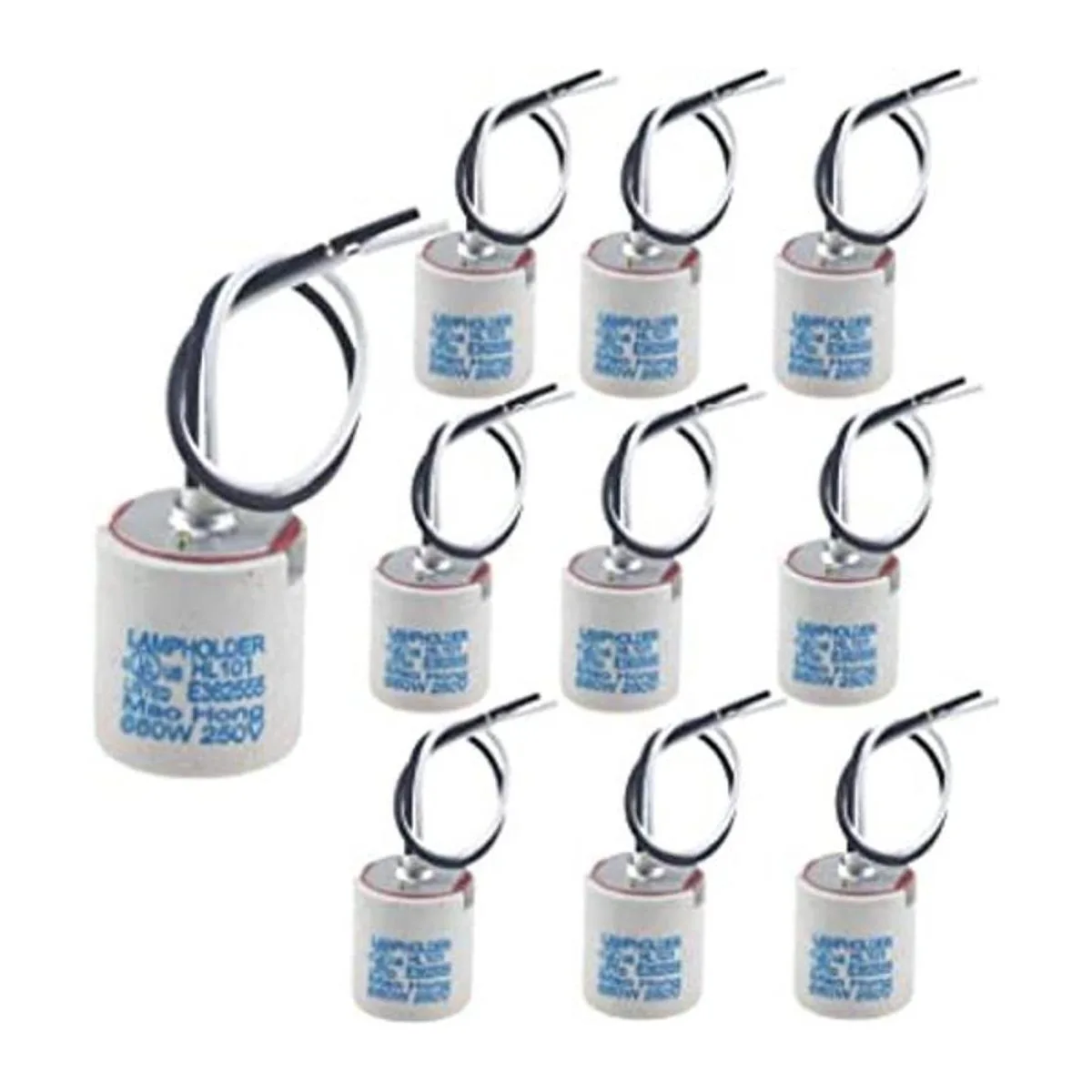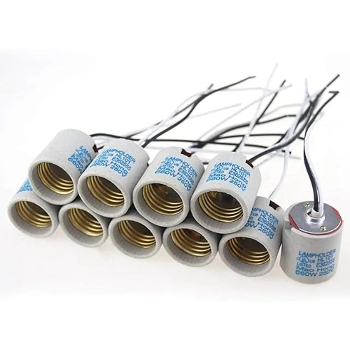 Rextin 10 soportes de bombilla estándar de cerámica para bombillas E26 E27 con alambre para bombillas halógenas calientes E26 B, 10 unidades