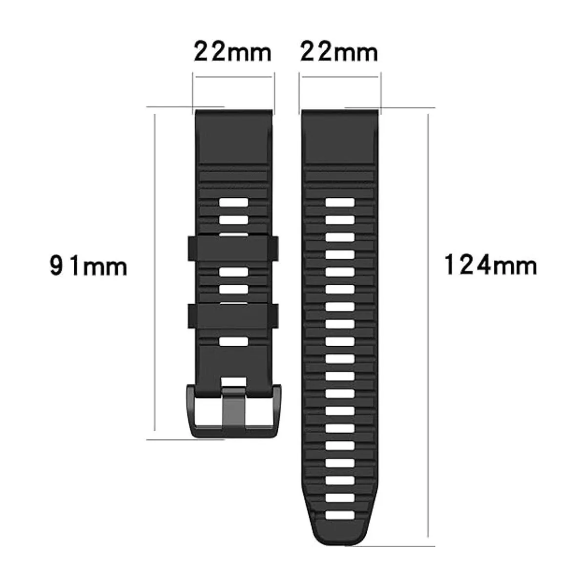 Compatibilidad: esta correa de silicona de ajuste rápido de 0.866 in es compatible con Garmin Fenix 7/Fenix 6/Fenix 6 Pro/Fenix 5/Fenix 5 Plus/Forerunner 745/Forerunner 935/Forerunner 945/Approach S60/Approach S62/Quatix 5/Quatix 6/D2 Delta/D2 Mach 1/E pix Gen 2/Instinct/Instinct 2/Descent G1/MARQ Adventurer/MARQ Athlete/MARQ Captain/MARQ Driver/MARQ Golfer/MARQ Aviator, no compatible con Garmin Fenix 7S/7X/6S/6S Pro/6X/6X Pro/5S/5S Plus/5X/5X Plus. Nota: el reloj inteligente no está incluido
