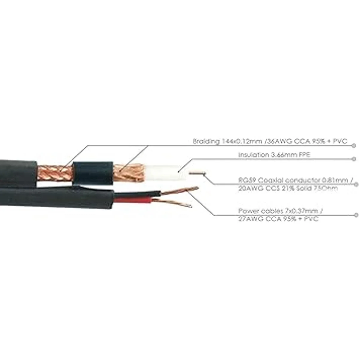 RG59 Cable coaxial siamés de 500 pies, cable CCTV para cámara de seguridad, cable de vídeo y alimentación combinado, 20 AWG