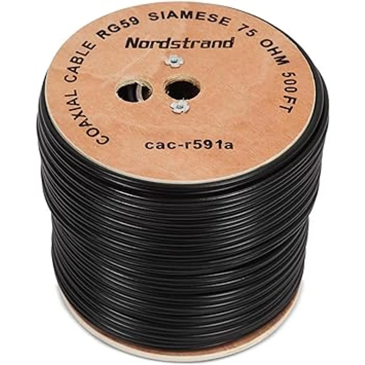 Cable siamés RG59 de calidad profesional de Nordstrand para uso con la mayoría de sistemas de cámaras CCTV, incluyendo cámaras de supervivencia