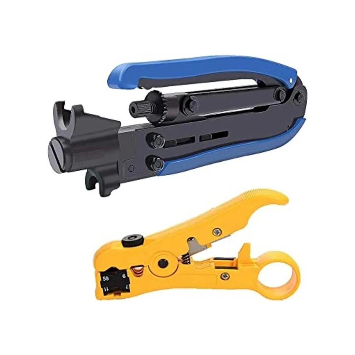 RG6 Herramienta de compresión Kit de crimpadora de cable coaxial,Kit de crimpadora de cable coaxial,Herramienta de compresión coaxial,RG6 RG59 RG11 755 757 Pelacables coaxiales