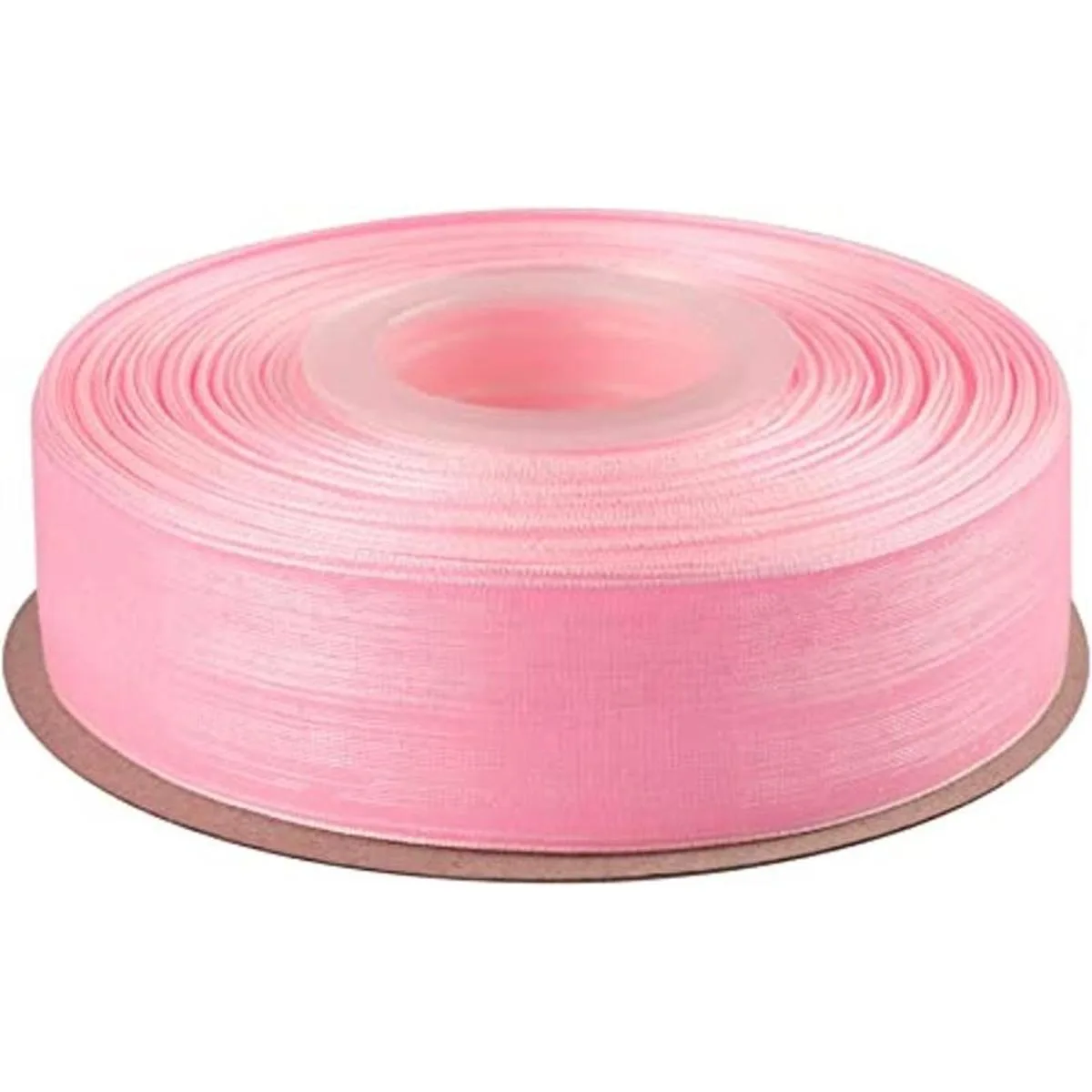 Ribbonitlux Cinta de organza transparente de 1 pulgada, cinta de gasa rosa brillante de 50 yardas, ideal para bodas, eventos de Navidad, hacer ramos de flores, manualidades