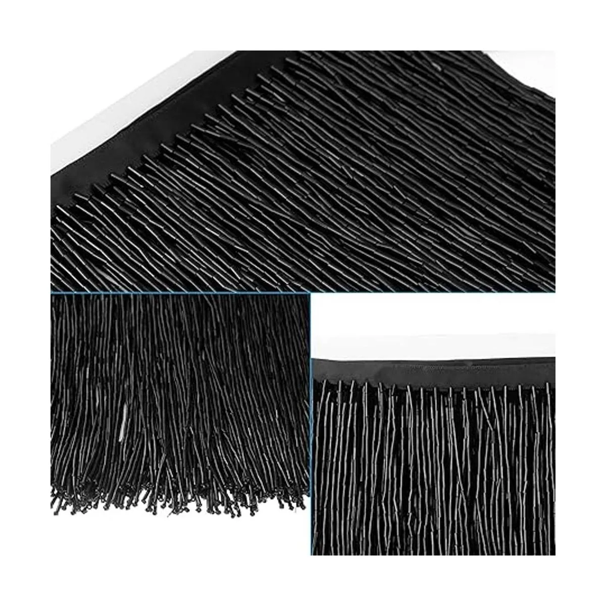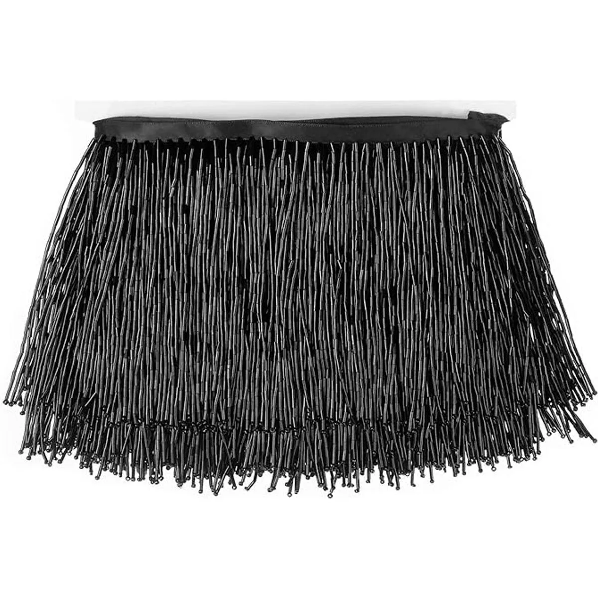 Ribete de flecos con cuentas, ribete de flecos de borla de cinta de 6 pulgadas de ancho, 1 yarda de largo para manualidades, decoración de ropa de vestir negro