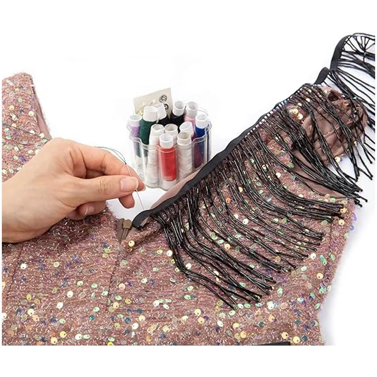 Fácil de usar: puedes cortar el borde de borla de cuentas de cristal con tijeras y luego coser en vestidos, ropa o accesorios de decoración