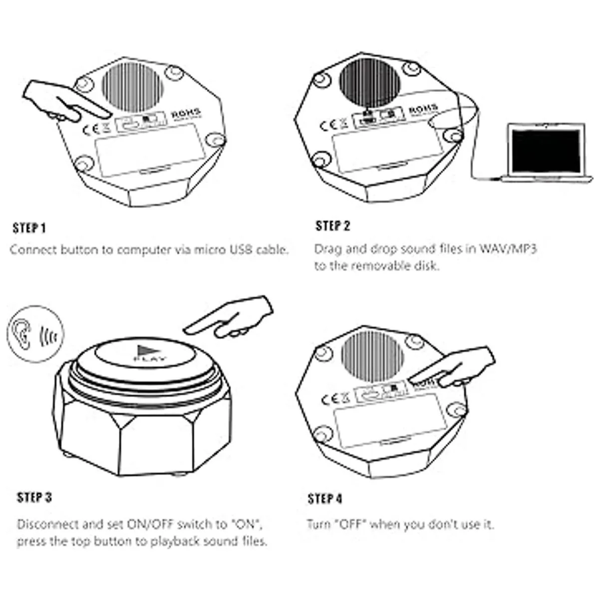 RIBOSY USB Sound Button Make Your Own Button by Uploading Audio Files Support 100 Recordings Top Recordable Quality Playback USB Cable Included