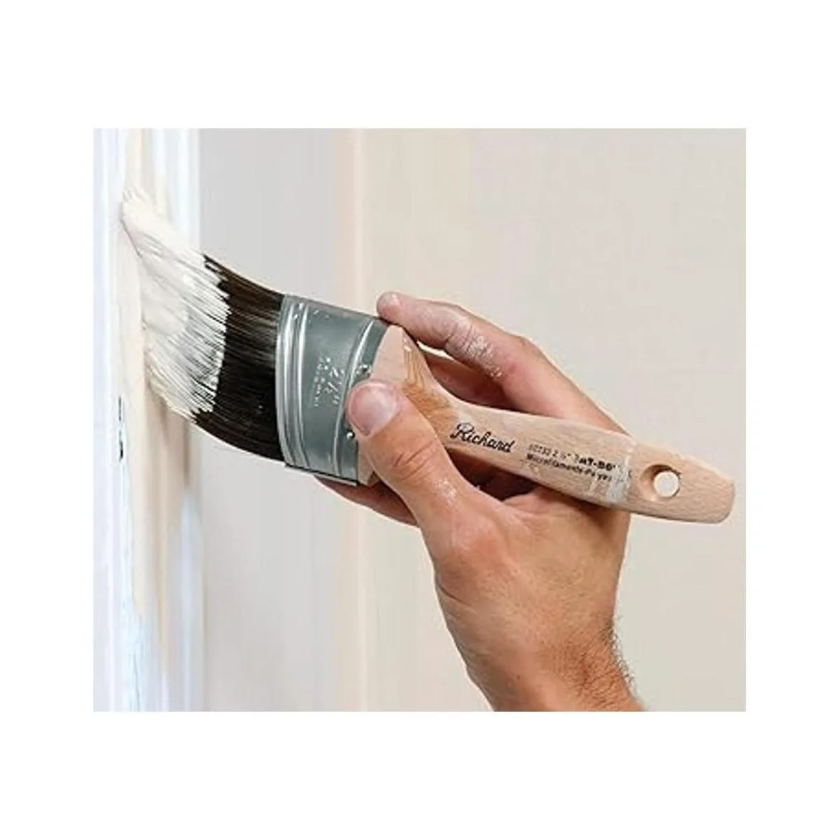 El mango del cepillo de pintura es de madera dura con cerdas de poliéster de alta calidad que mantendrán su forma y rendimiento durante meses de uso continuo.