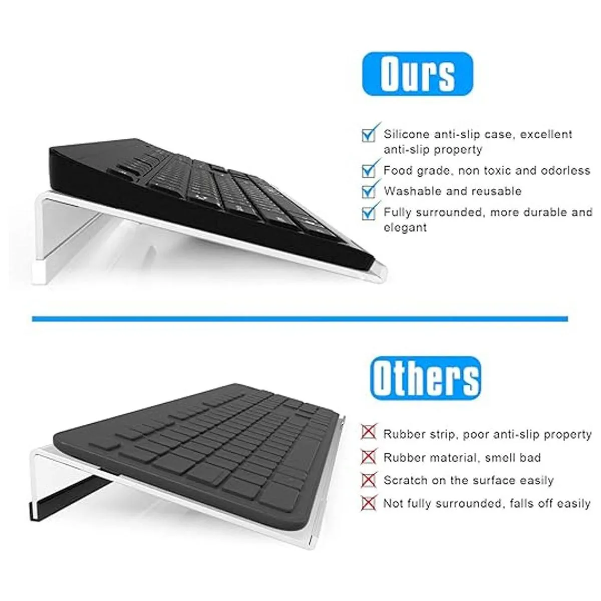 Richboom Soporte de teclado de computadora inclinado de acrílico transparente para una fácil escritura ergonómica, versión mejorada, soporte de teclado con funda antideslizante de silicona para escritorio de oficina, hogar, escuela, transparente