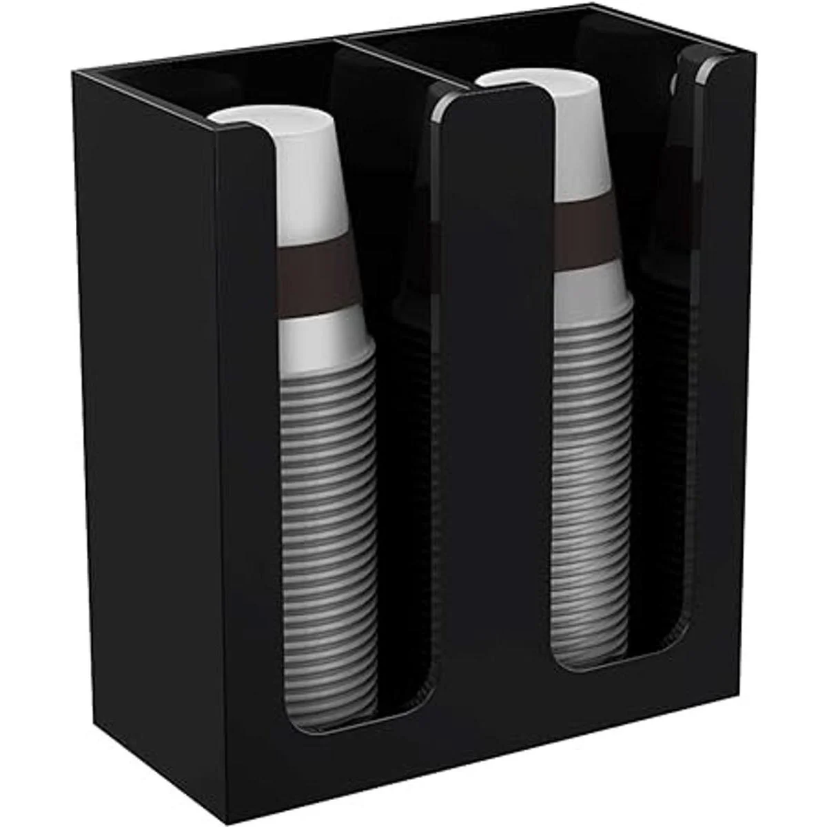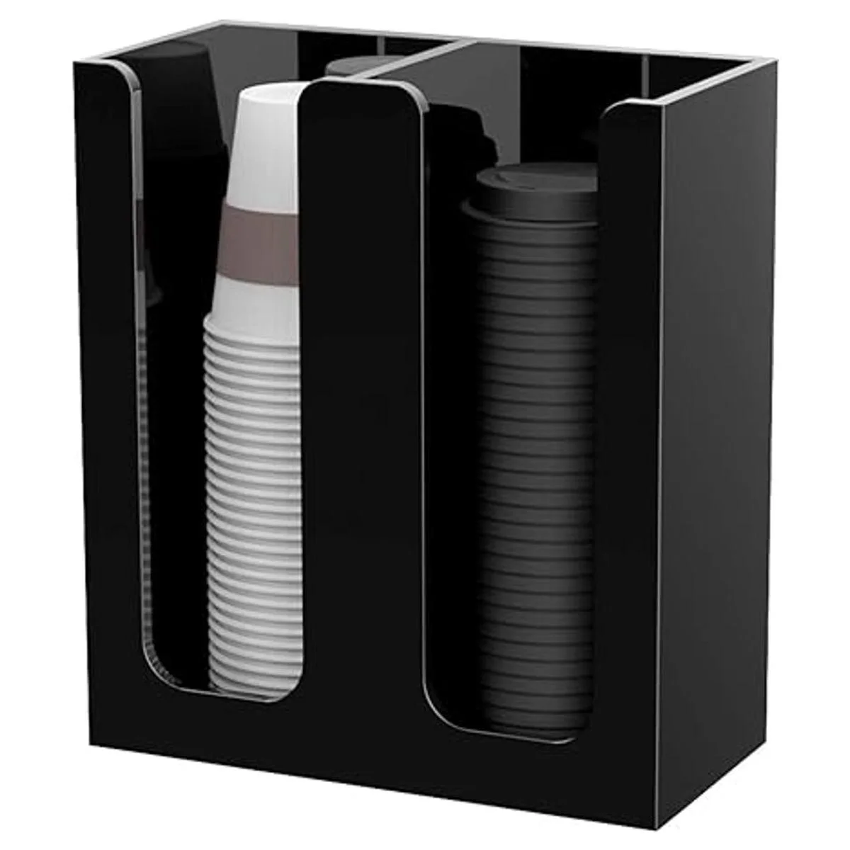 Richboom Soporte organizador de almacenamiento acrílico para taza de café y tapa, 2 compartimentos, color negro