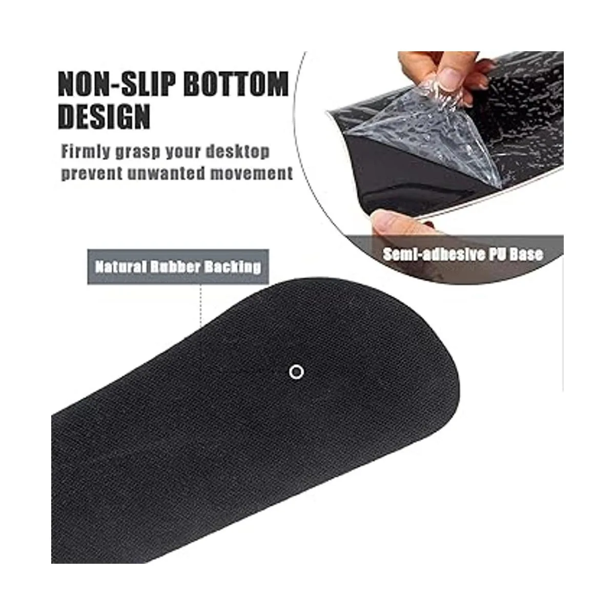 Base de goma antideslizante: la parte posterior de este juego de soporte de muñeca está engrosada con material de goma texturizada, que proporciona un agarre pesado que evita el deslizamiento o movimiento no deseado para teclado y almohadillas de mouse al escribir. Doble pegado y prensado a mano para que el borde suministre un borde plano y suave y no se enrolla ni se separa.