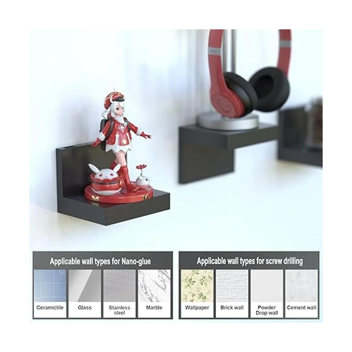 Múltiples formas de instalación: dos opciones de instalación súper fáciles están disponibles, pasta de nanopegamento y perforación de tornillos. Viene con tiras adhesivas y tornillos, puedes elegir cualquier manera de instalar dependiendo del tipo de pared, lo que te permite terminar la instalación en cuestión de segundos. Para evitar daños al papel pintado, el método de instalación nano adhesivo no es adecuado para papel pintado.