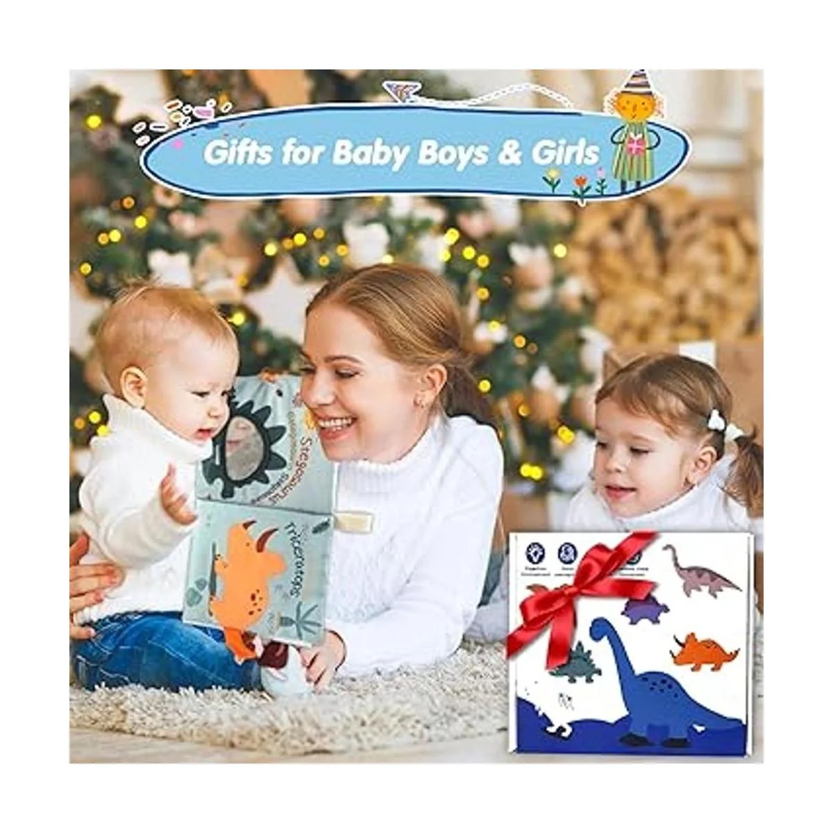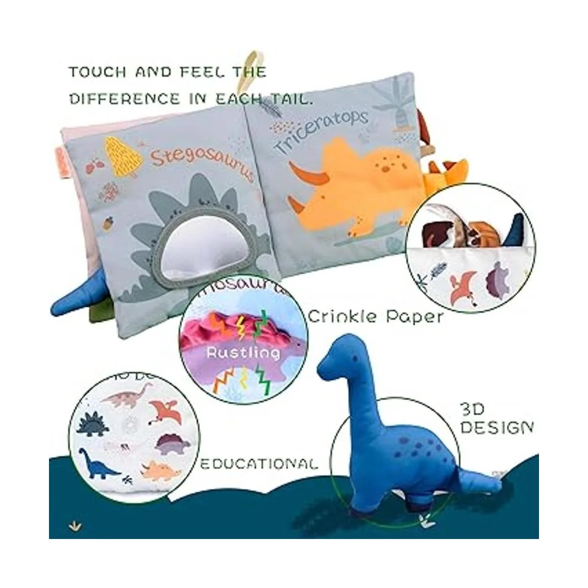 Juguetes sensoriales para bebés de 0, 3, 6, 12 meses: cada página es algo nuevo: varios dinosaurios y colas 3D, burbujas chirriantes, páginas arrugadas, un espejo, imágenes coloridas y llamativas, páginas fáciles de girar para ayudar a desarrollar habilidades motoras. Cada cola está hecha de diferentes telas y texturas, es ideal para agarrar y aprender Perfecto como juguetes para recién nacidos, juguetes para bebés, juguetes de aprendizaje para bebés, juguetes de espejo para bebé