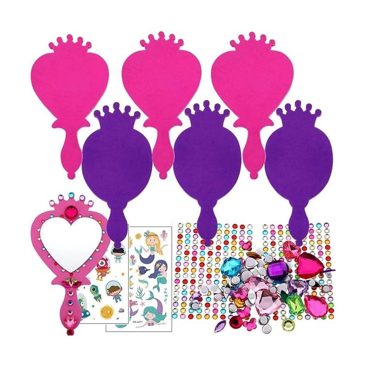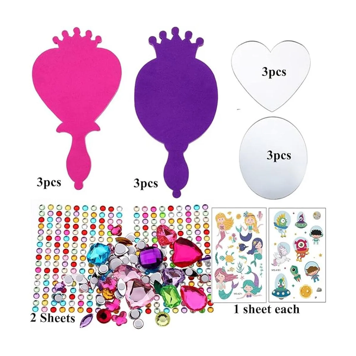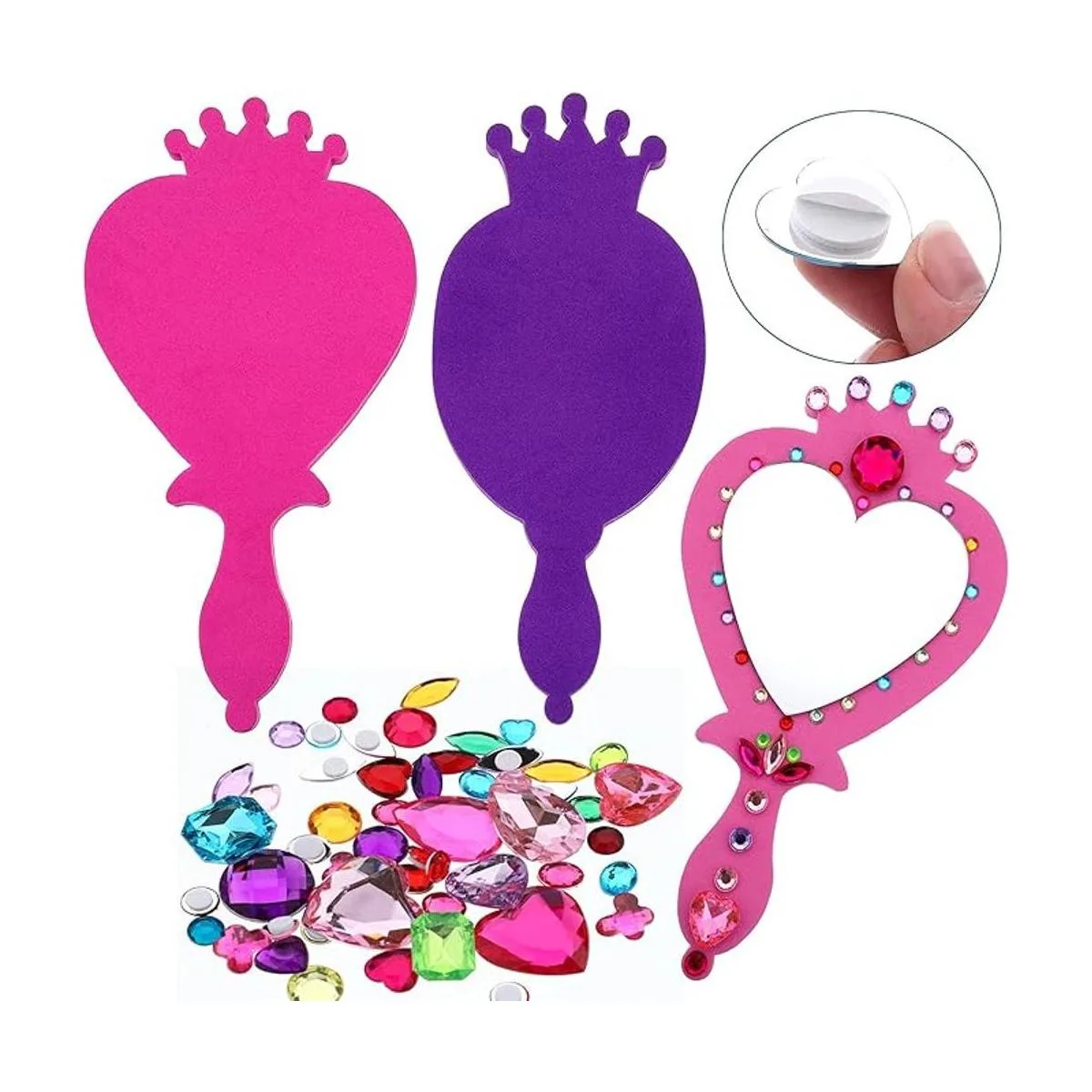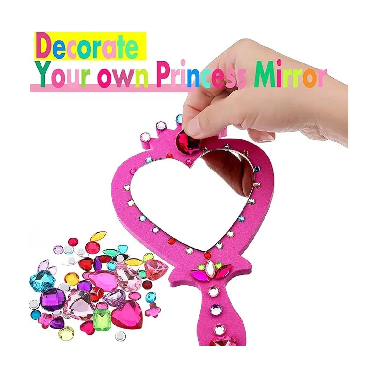 Decora tus propios espejos de princesa con múltiples joyas autoadhesivas, sin preparación, proyectos de manualidades sin desorden para todas las reuniones.