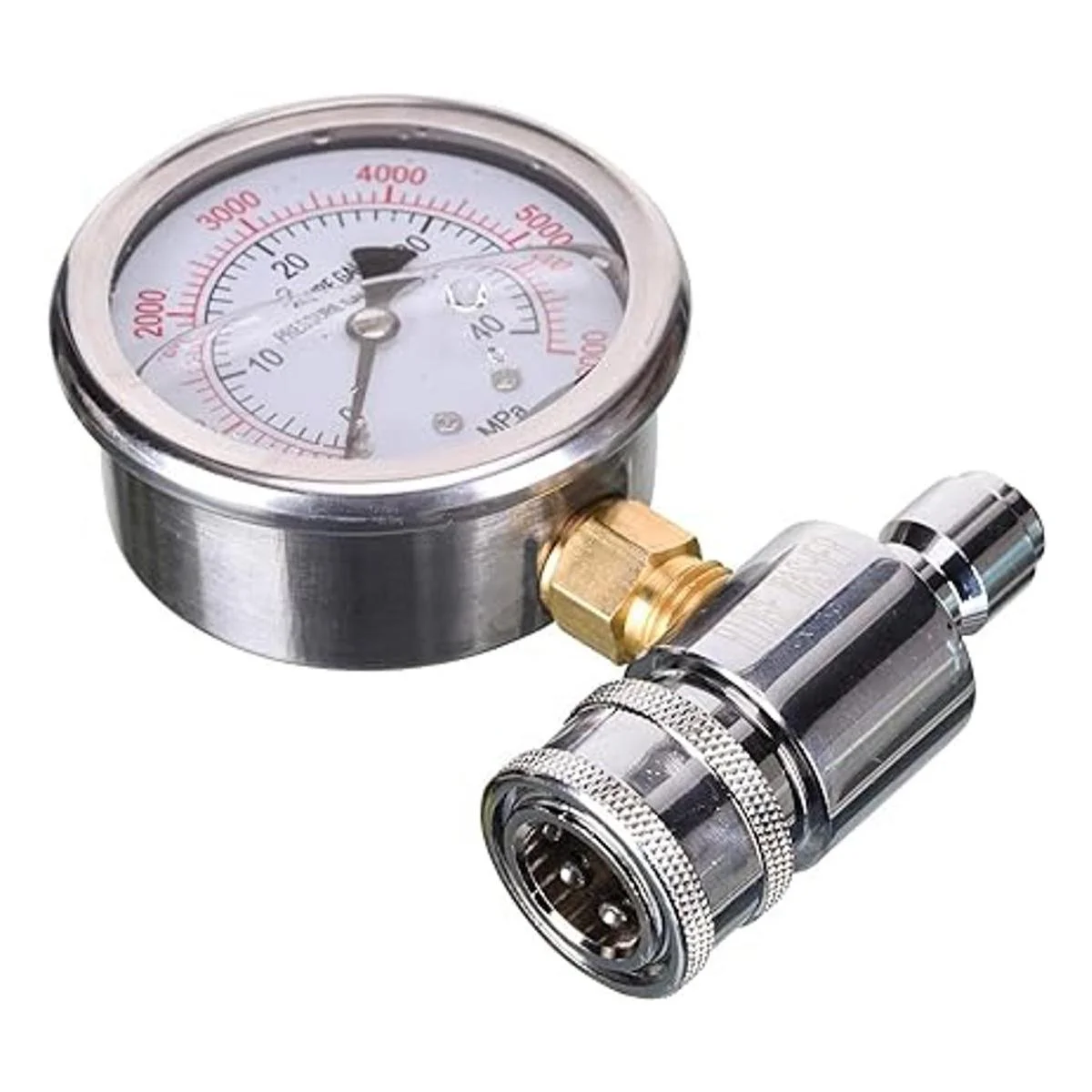 El medidor psi de la lavadora a presión tiene un enchufe y enchufe de conexión rápida de 3/8 pulgadas; puedes conectar el medidor de prueba de presión de agua entre la manguera de la lavadora eléctrica y la bomba.