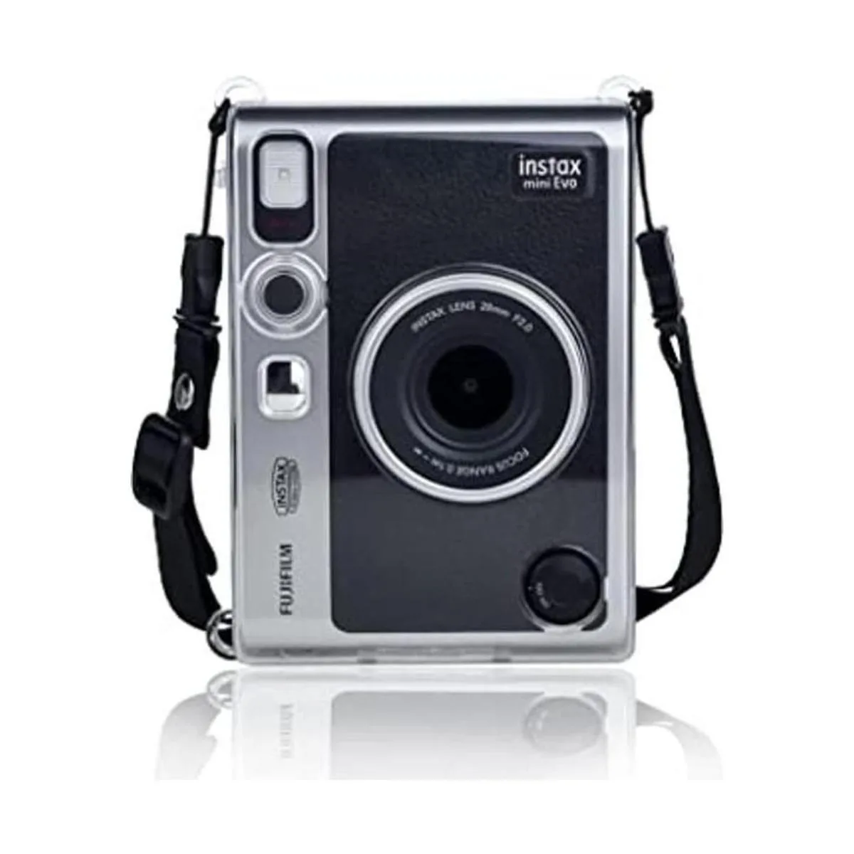 Rieibi Instax Mini EVO Case Clear Funda protectora de PVC de cristal para cámara Fuji Instax Mini EVO Funda de transporte rígida con correa de hombro extraíble, transparente