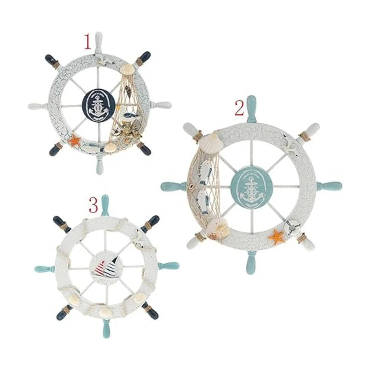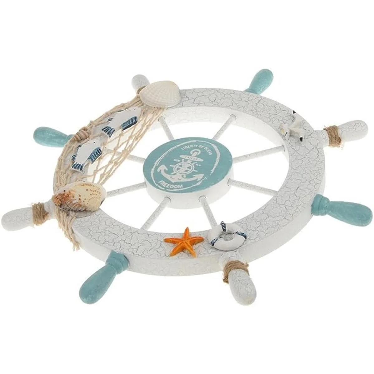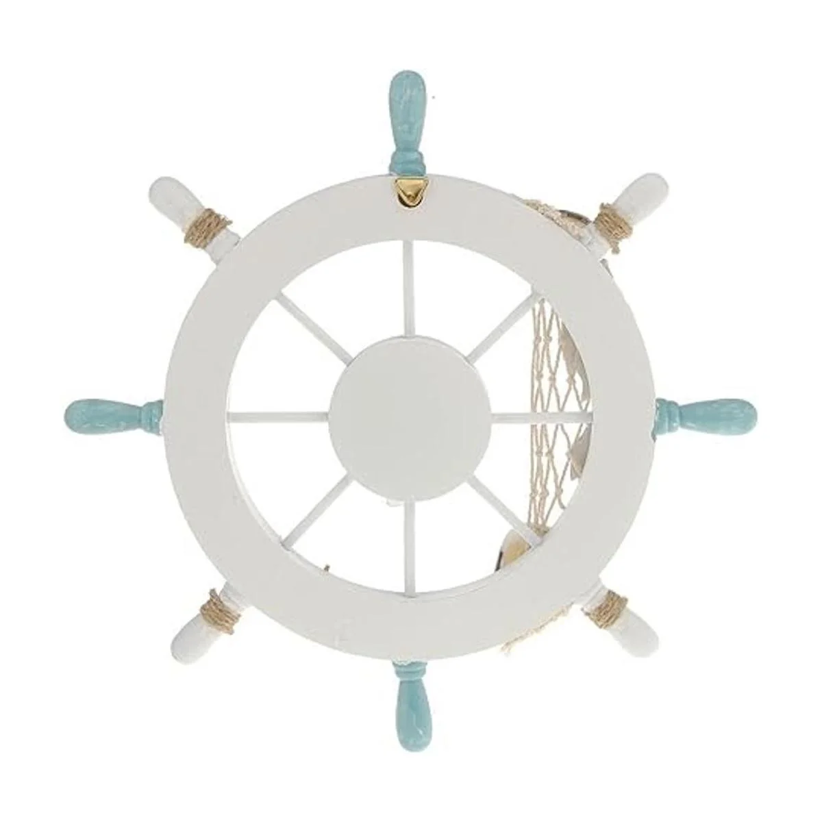 Rienar timón de madera con red de pesca, playa, barco, náutico, color blanco, decoración para la pared