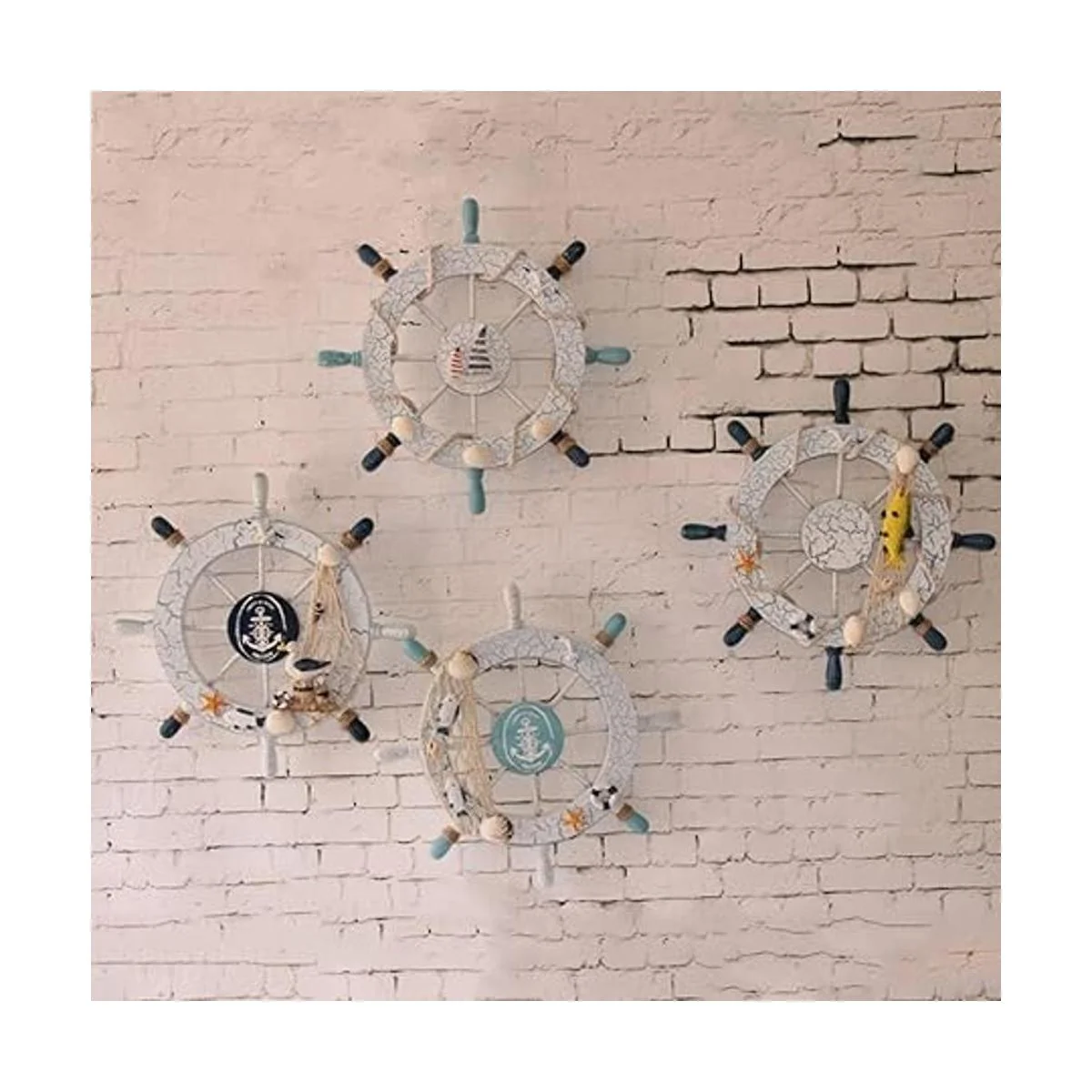 Este timón de madera pintado a mano es el complemento perfecto para cualquier entorno náutico