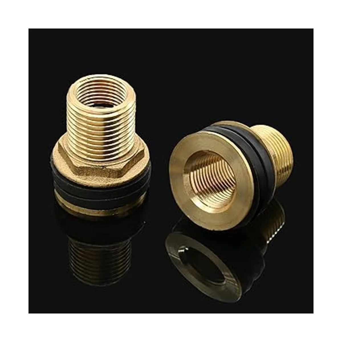 Rierdge 2 piezas de latón para mamparo, conector hembra de 12 pulgadas macho para tanque de agua con 2 anillos de goma para barriles de lluvia, acuarios