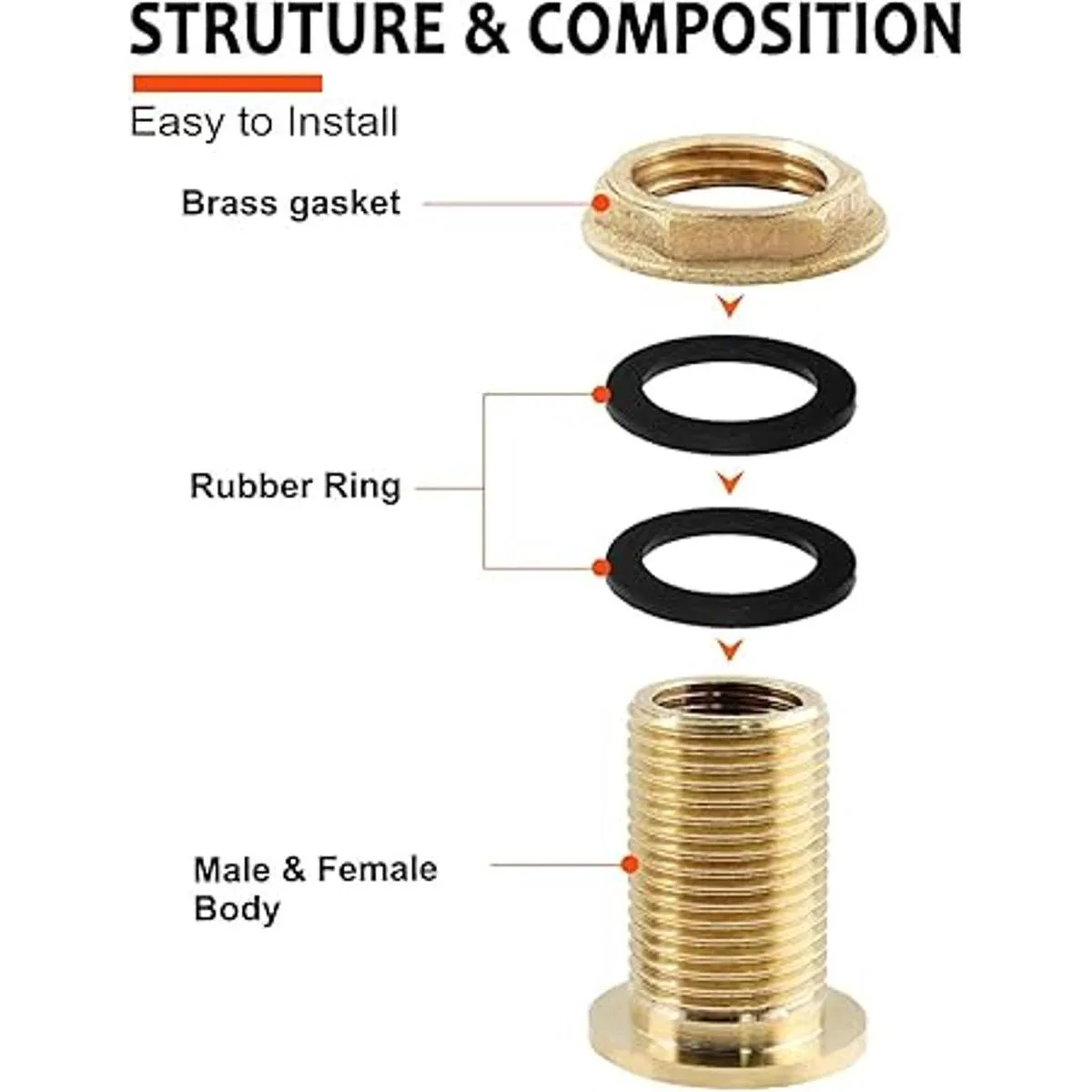 Lo que obtienes: el paquete contiene 2 piezas de accesorios de mamparo de latón, cuyo tamaño del cuerpo es de 3/8 pulgadas hembra 1/2 pulgadas macho, la longitud total es de 1.4 pulgadas. Nuestro accesorio de mamparo es suave sin rebabas.