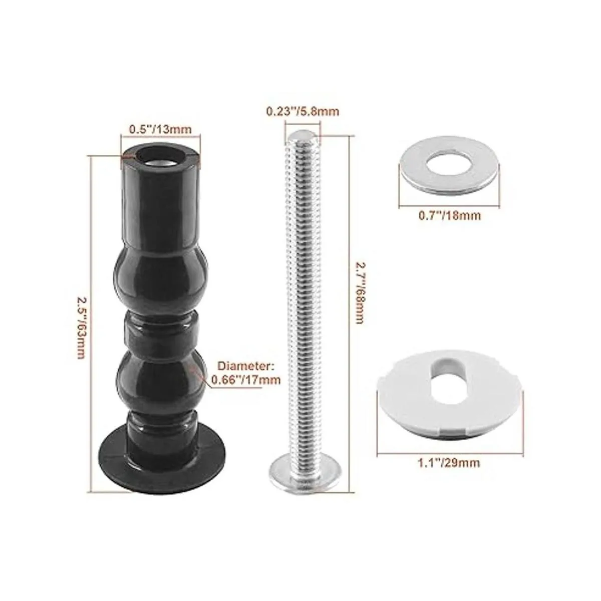 Rierdge 4 tornillos de tapa de inodoro, tornillos universales de expansión de goma para asiento de inodoro, fijaciones de asiento de inodoro de 2.5 pulgadas, tornillos de goma expandibles para tuercas superiores, kit de piezas de repuesto