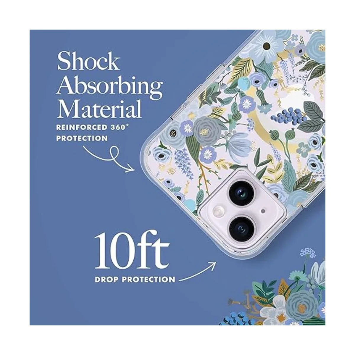 Rifle Paper Co. Funda para iPhone 14 Compatible con MagSafe Protección contra caídas de 10 pies Bonita funda para iPhone de 6.1 pulgadas con patrón floral, tecnología antiarañazos, material a prueba de golpes, ajuste delgado, color azul fiesta de jardín